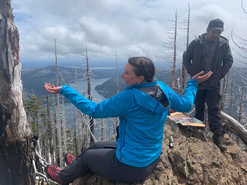 I won’t lie, this hike kicked my ass. I think I might have possibility made the mistake of pushing too fast too hard since there was so much oxygen and I felt supercharged and didn’t have the normal cues my body gives me when hiking at my normal 10,000-14,000 foot elevations. Also, my mountaineering boots and I were definitely in a love-hate relationship at this point, and my feet were beat up and blistered (moleskin is useless in sweaty boots rated for -20C temperatures). Andddd we did a seven mile walk on the beach the evening before. But nonetheless, I made it to the top of a mountain in Washington, even if it wasn’t volcanic or the one I came for!