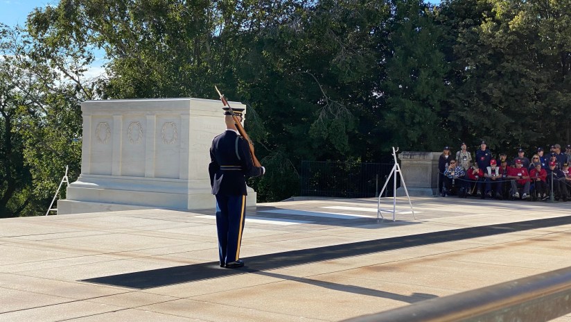 At the Tomb of the Unknown Soldier, we watched the changing of the guard at 9am. The ceremony is performed every thirty minutes during the summer months, and hourly in the winter months. After the changing of the guard, we watched a few wreath laying ceremonies before moving on. We did have a soldier come up to us and let us know that the Minister of Defense for Japan would be laying a wreath at 10:30am in case we were interested in watching. Sadly we were exploring other areas of the cemetery at this time and missed it. But it was nice of her to let us know!