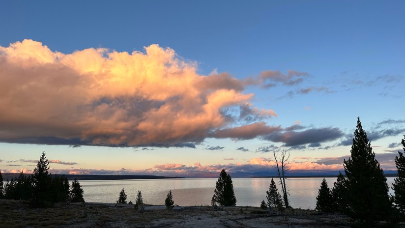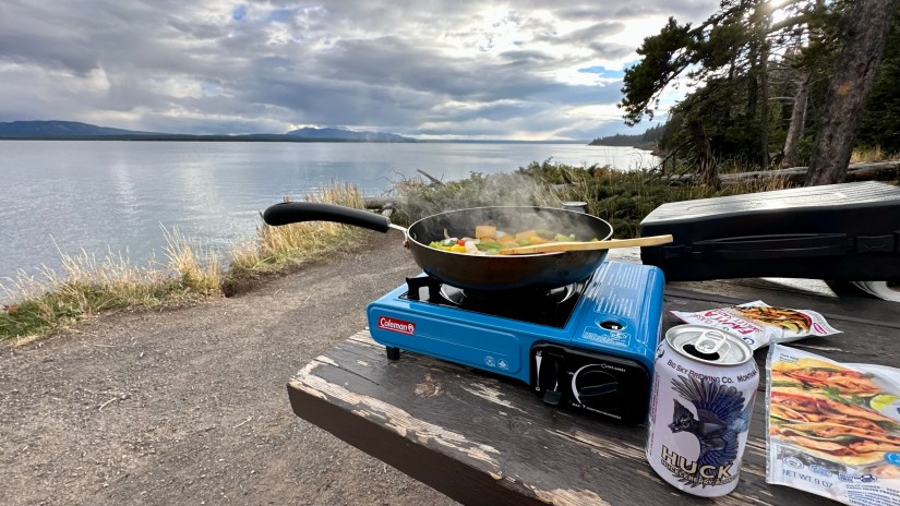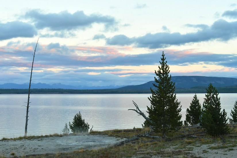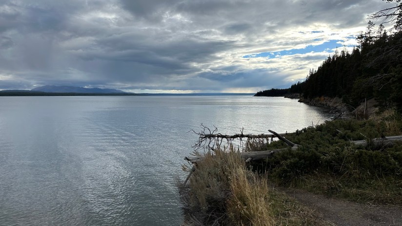 As we approached Yellowstone Lake and reveled in the rain-free skies, we got the brilliant idea to find a picnic area to enjoy dinner at on the shores of the lake. It took a bit, as most of the picnic areas were wooded and not lakeside, but then we found the perfect one!