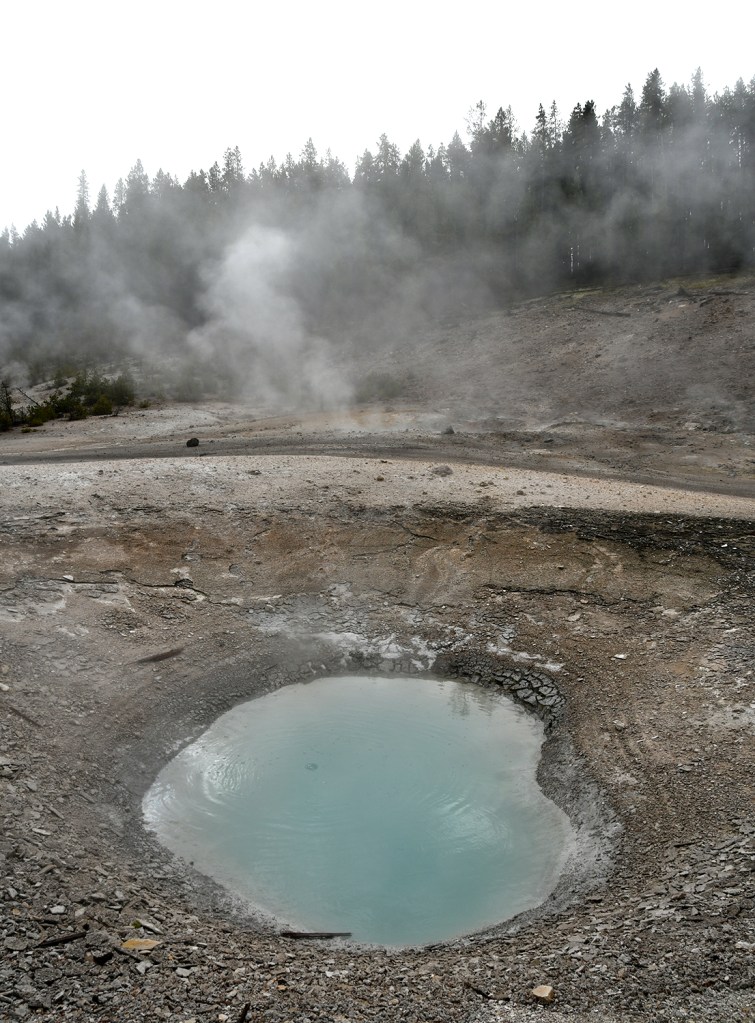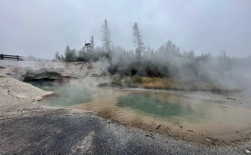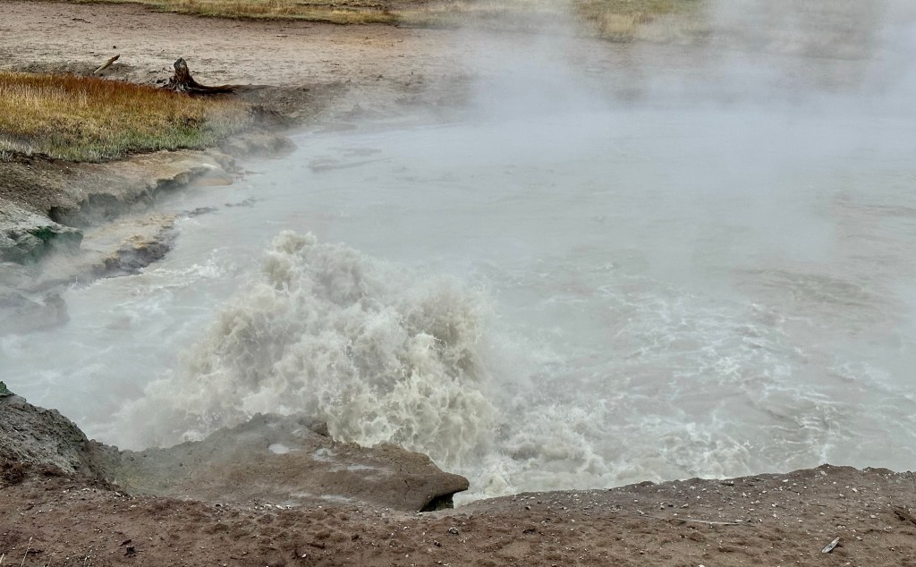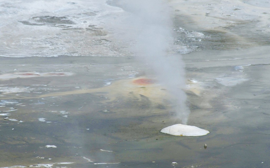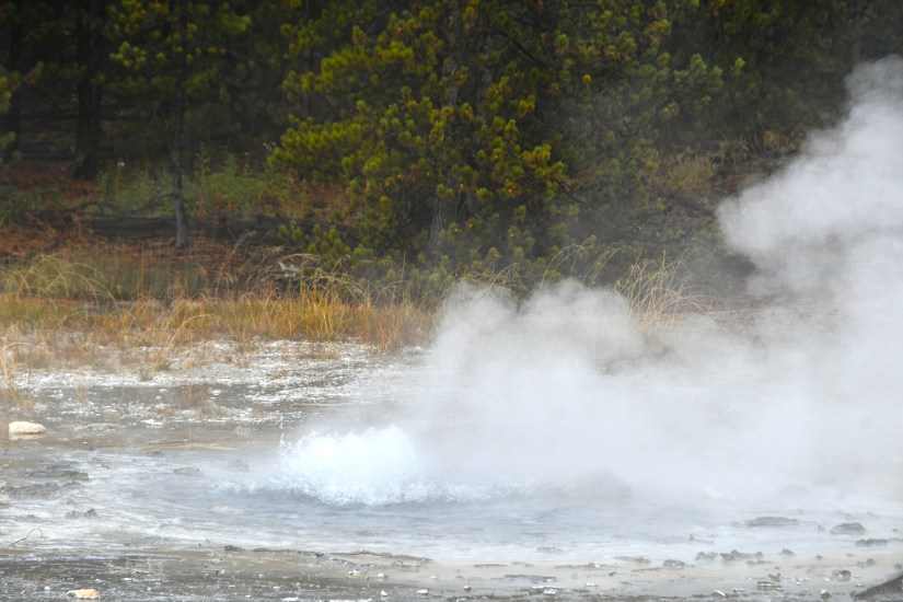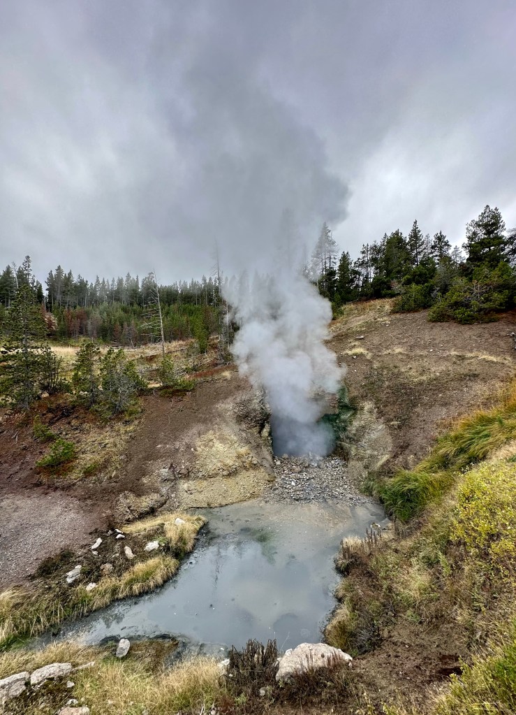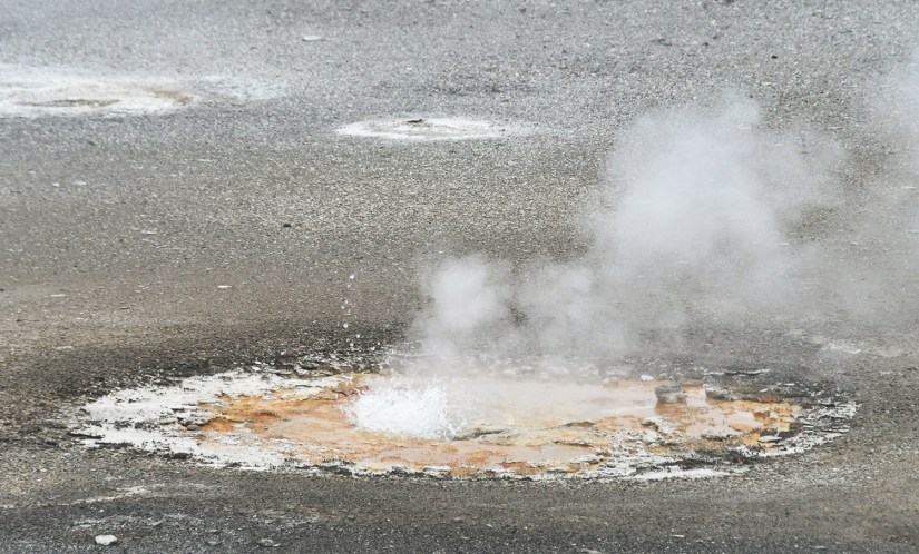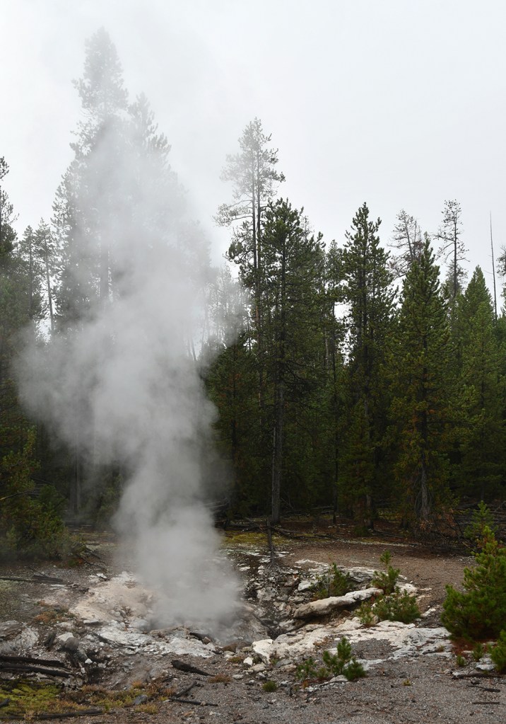 Steamboat Geyser was just spouting steam. I’ve never seen a major eruption, just a minor eruption, so it was another Yellowstone trip with my car’s paint being spared Steamboat’s silica onslaught!