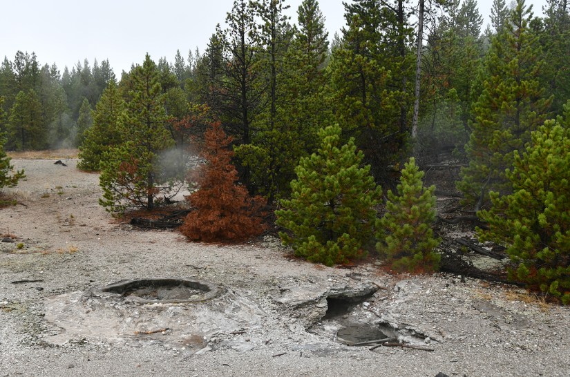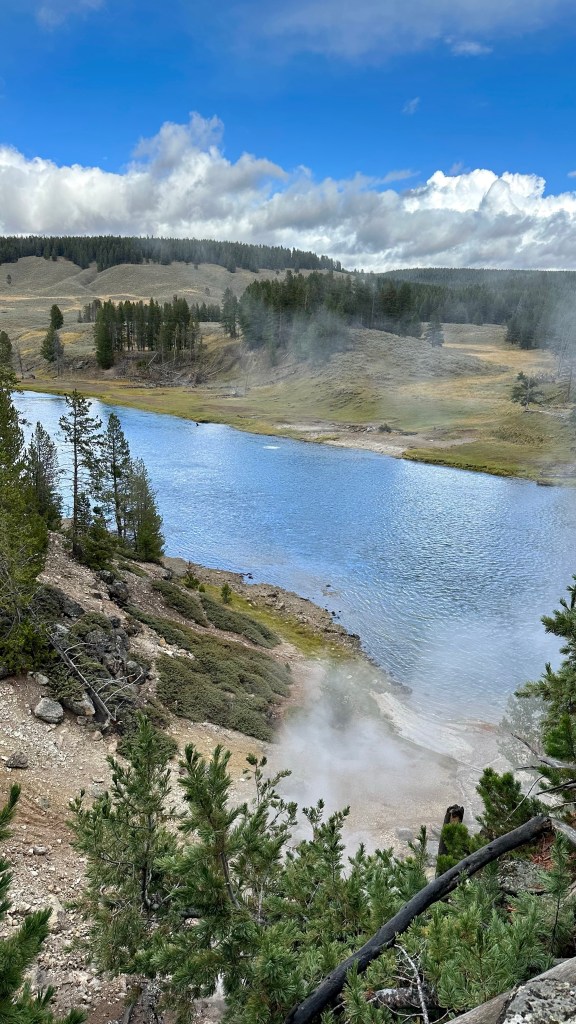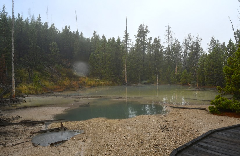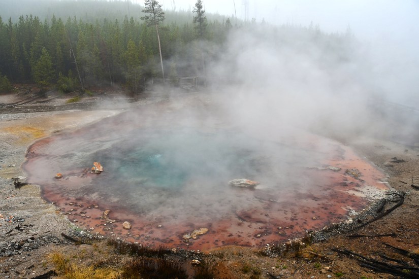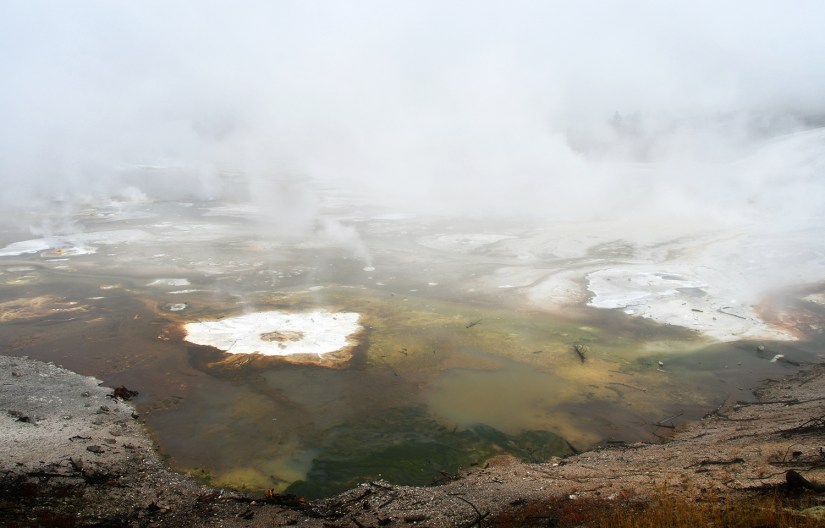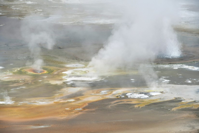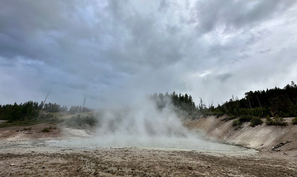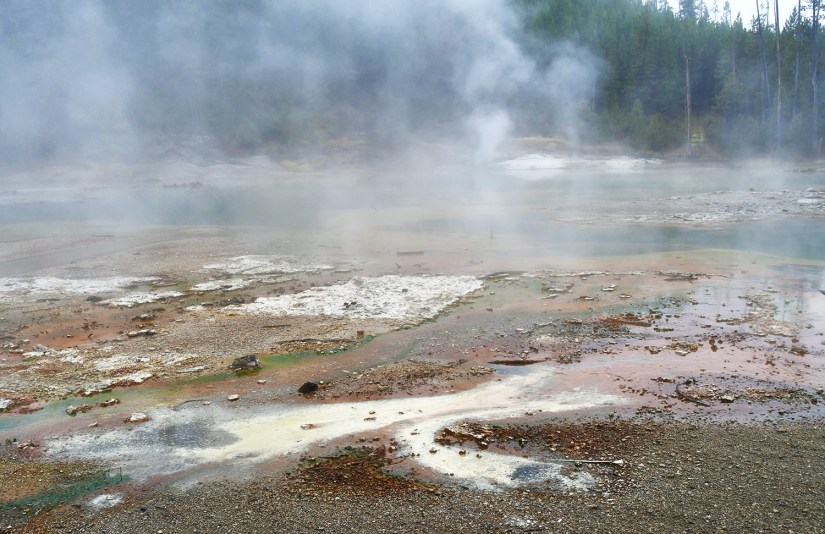 Steamboat Geyser was just spouting steam. I’ve never seen a major eruption, just a minor eruption, so it was another Yellowstone trip with my car’s paint being spared Steamboat’s silica onslaught!