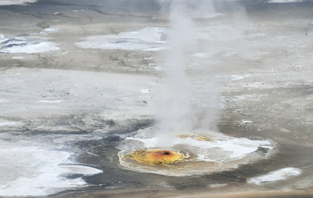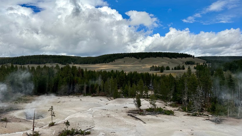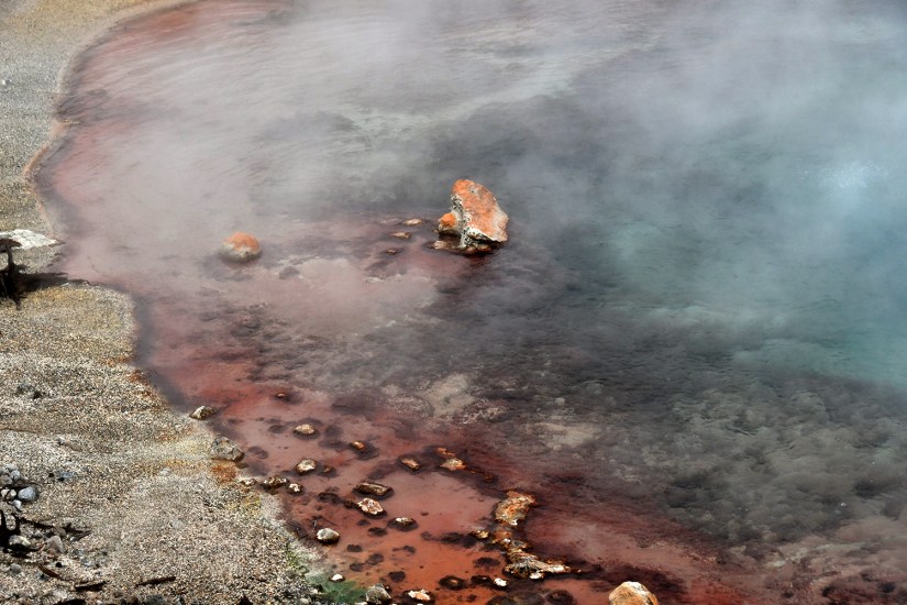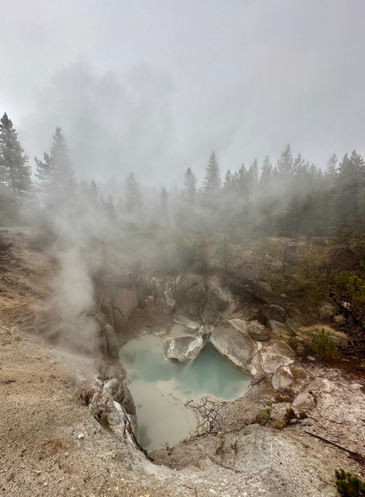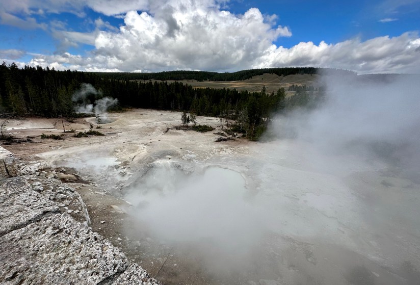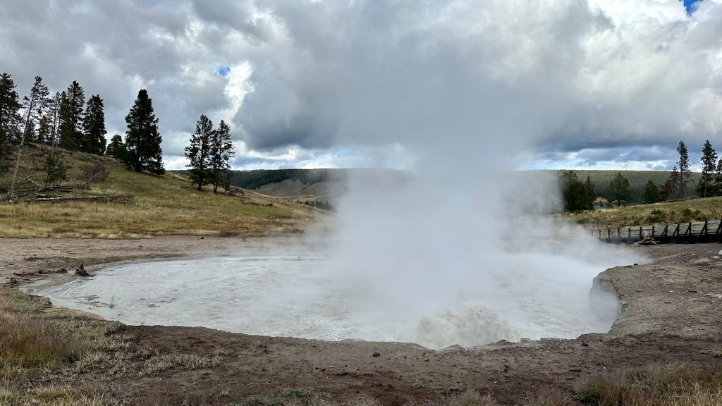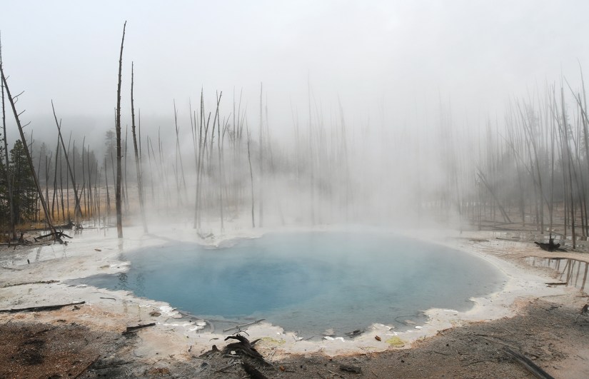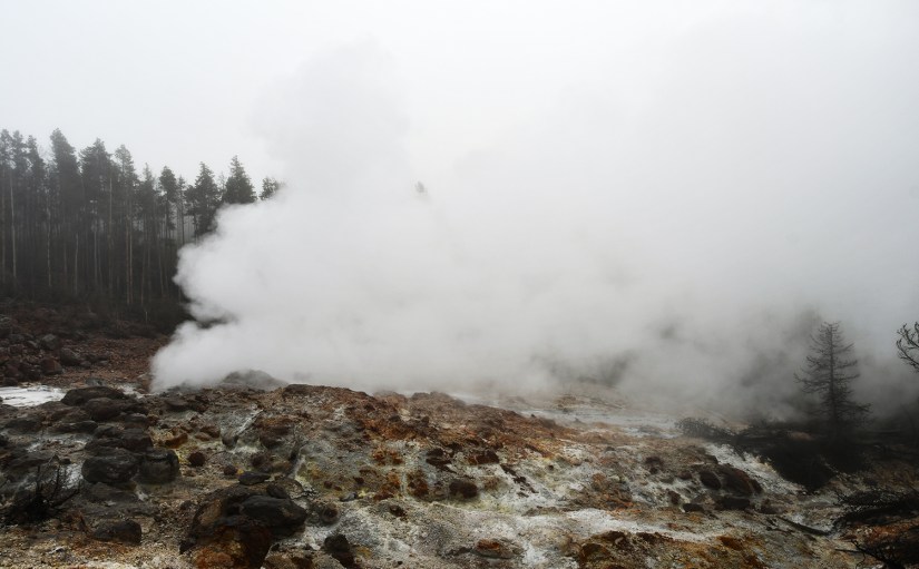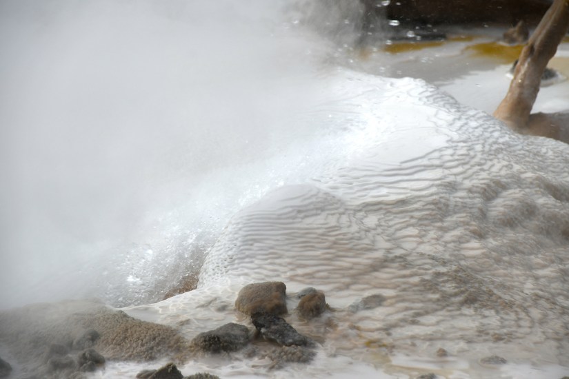 Steamboat Geyser was just spouting steam. I’ve never seen a major eruption, just a minor eruption, so it was another Yellowstone trip with my car’s paint being spared Steamboat’s silica onslaught!