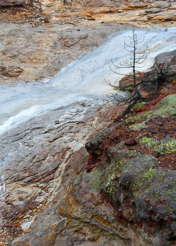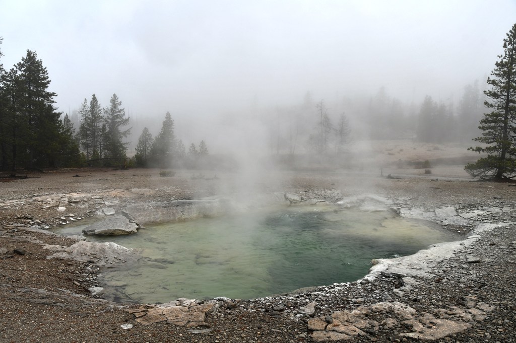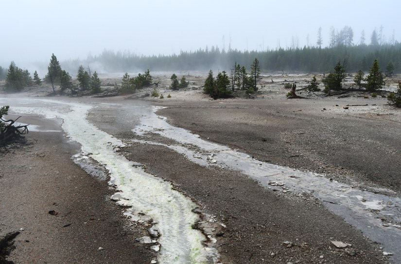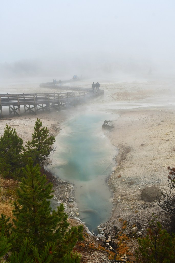 We wound our way around the Back Basin, taking in the steamy scenes and capturing lots of photos. The Norris Geyser Basin is known for its “disturbances” and fluctuations depending on ground water and other factors, so I geeked out over the changes in some features thanks to all the recent moisture.