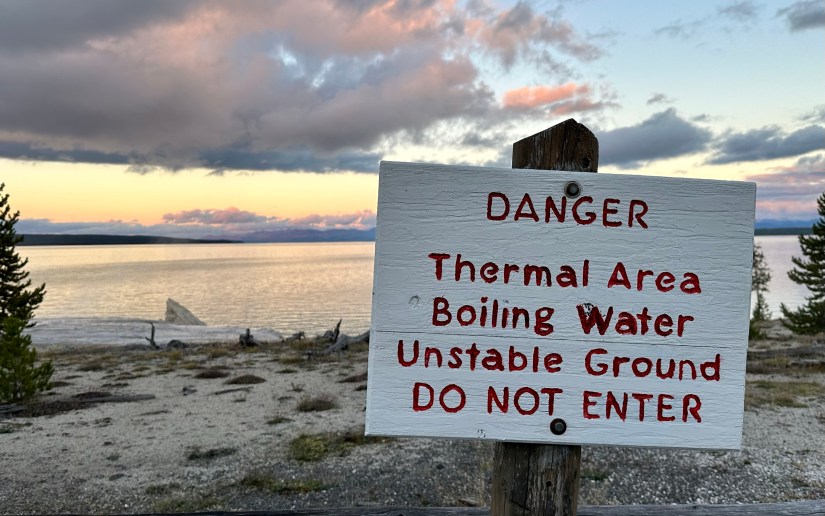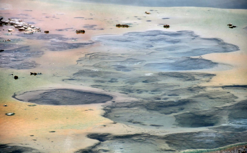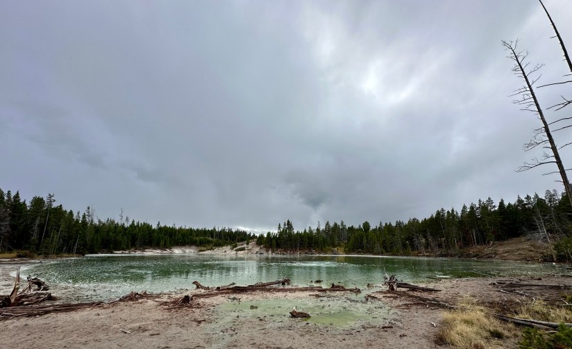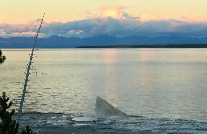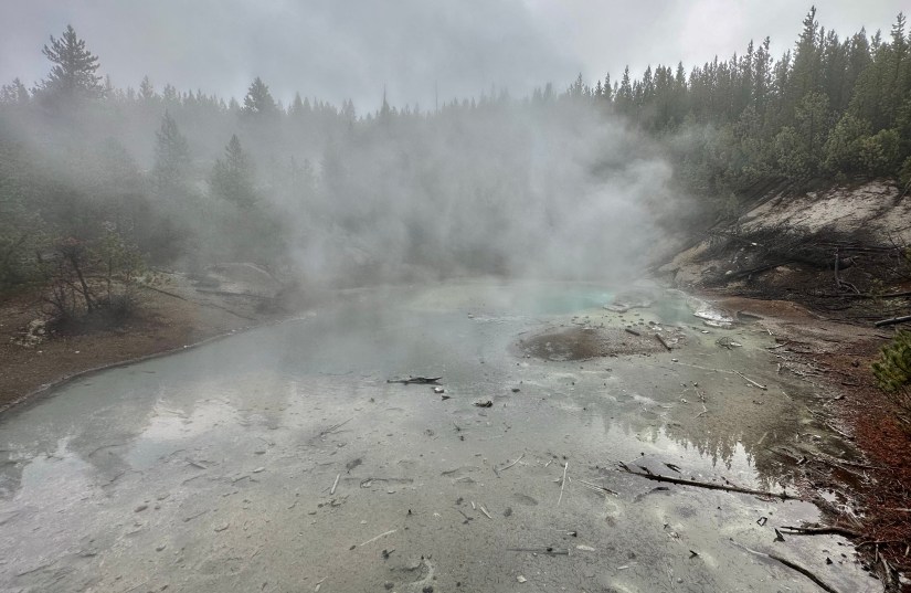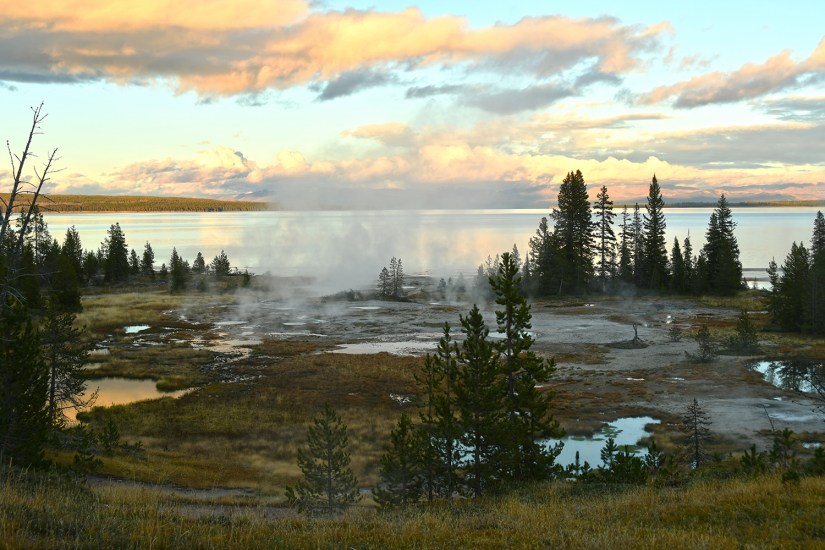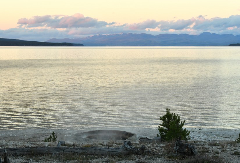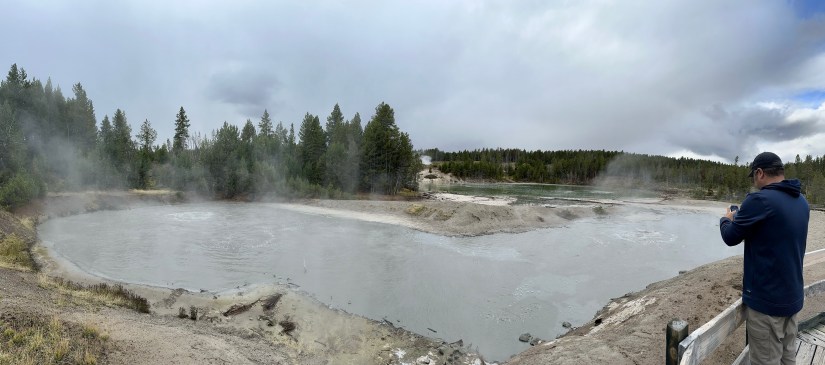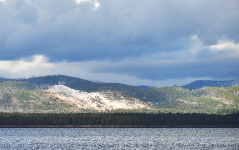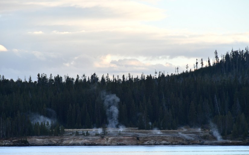 As a novice geyser gazer, I know where some hidden thermal areas are along the shores of Yellowstone Lake, so I took the opportunity to show them to Eric, who was game to see them. First up was Potts Basin, which use to have boardwalk access years ago before NPS tore them out. Now you can only view from a distance.