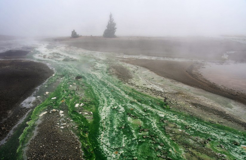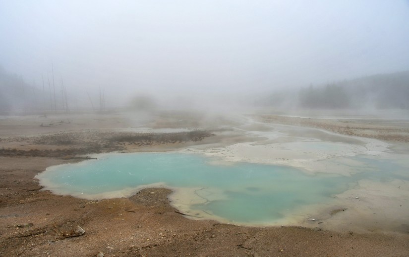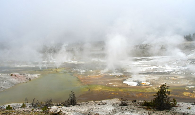 Norris Geyser Basin is my favorite. Not only is it home to the world’s tallest active geyser (Steamboat Geyser), it is the oldest (about 115,000 years old) and hottest geyser basin in Yellowstone. Most of the features are also acidic (acid geysers are pretty damn rare). To boot, it sits at the intersection of two faults!