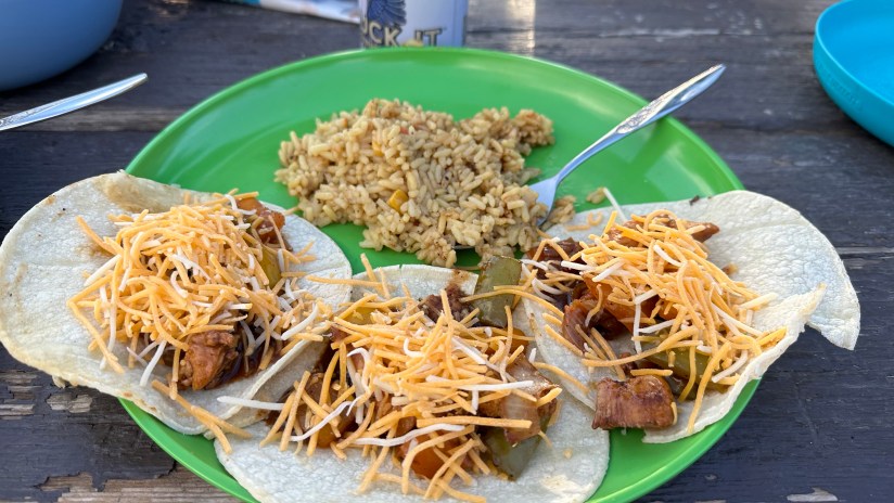 How freaking amazing is this?! We cooked up our final dinner of the adventure, returning to a favorite of chicken and fajita veggies.