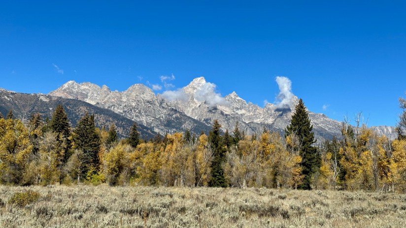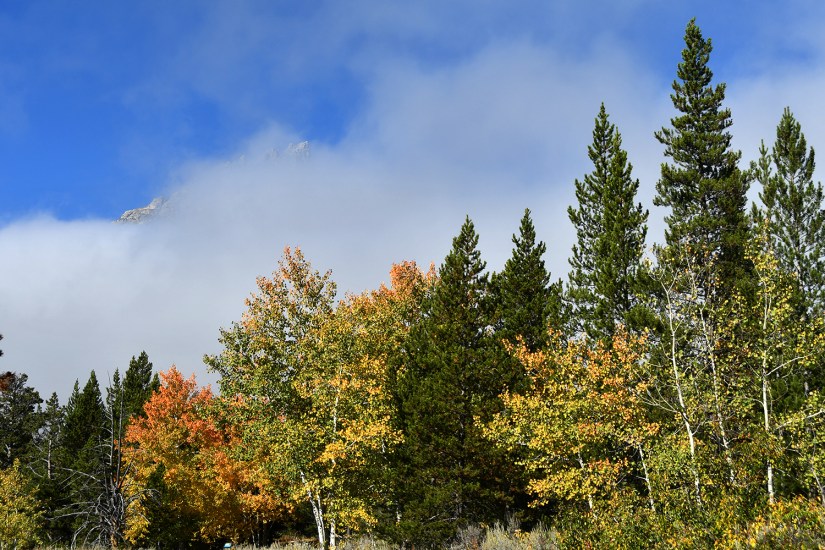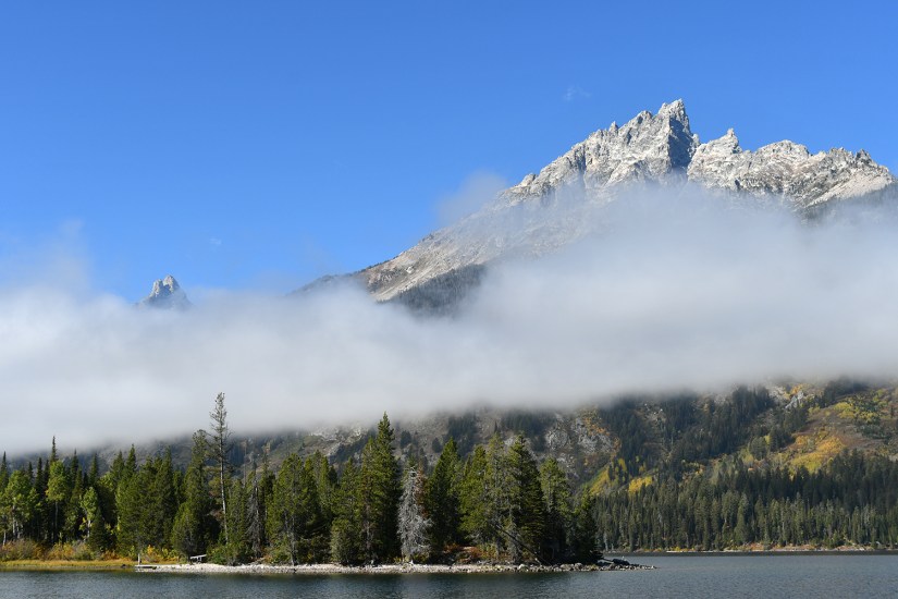 Well, “Falling for Yellowstone” would’ve been a strange name for an adventure day happening in Grand Teton National Park! The final day of adventure was here. We packed up the moist tent for the last time (it was a rockstar when it came to keeping us dry the entire trip!), and headed south from Lewis Lake.