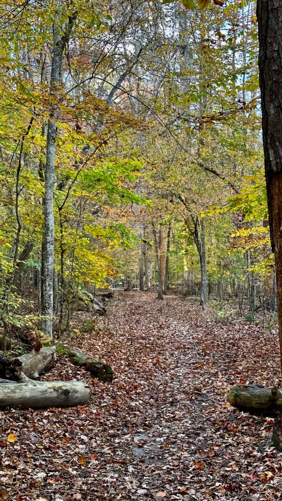 Visitor center chores completed, it was time to get in a short evening hike before heading back to the hotel. I was filled with glee that it was still fall in Georgia, as the leaves had long fallen back home in Wyoming. I found my way to the riverbanks and started on the trail. All trail junctions are signed, making navigation easy. Even better, everyone was so darn friendly on the trail! I’m use to Colorado hiking where half the people just glare at you or pretend you do not exist if you say “hi” on the trail, so the utter friendliness of everyone hiking this evening in Georgia was a bit shocking, in a pleasing way!