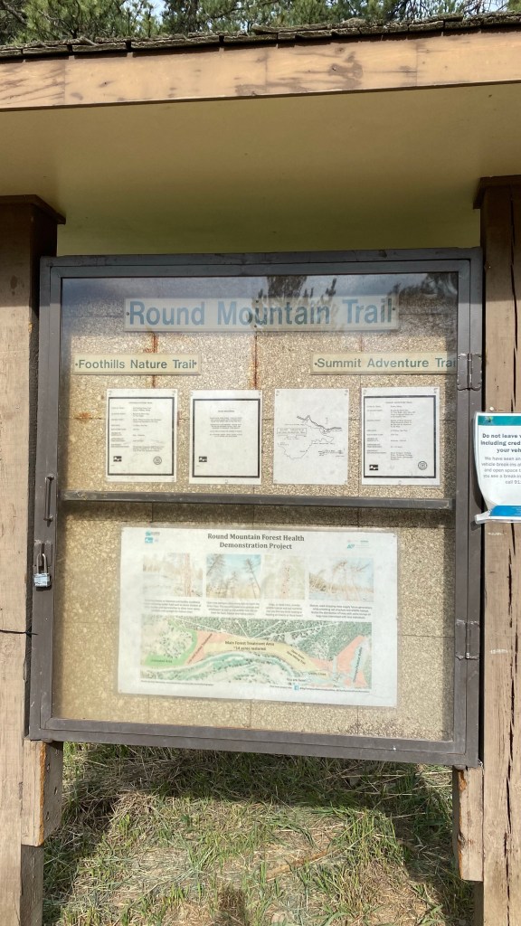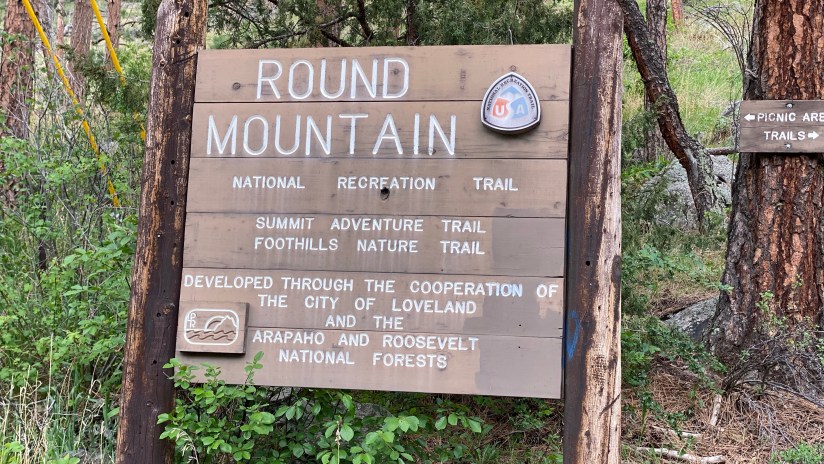 The Round Mountain National Recreation Trail was designated in 1981, and lies thirteen miles west of Loveland up US Highway 34. There’s two trails leaving from the heavily used trailhead, the Foothills Nature Trail (about a mile in length) and the Summit Adventure Trail, which is 4.4 miles (5 miles according to my watch) long one-way and goes to the summit of Sheep Mountain. I’ve never quite figured out what Round Mountain is, as the two summits easily obtained from this trail are Sheep Mountain and Stone Mountain!