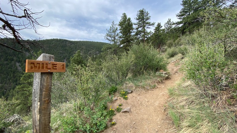 I knew Memorial Day Weekend crowds could be crazy, especially aheld of the upcoming cold front that would drop temperatures by the holiday, so I got to the trailhead early (an easy task as Loveland isn’t overly far from Cheyenne!) and started hiking at 8:26am. Straight from the parking lot the climbing starts, first starting out on a broad fire road, and narrowing to single track.
