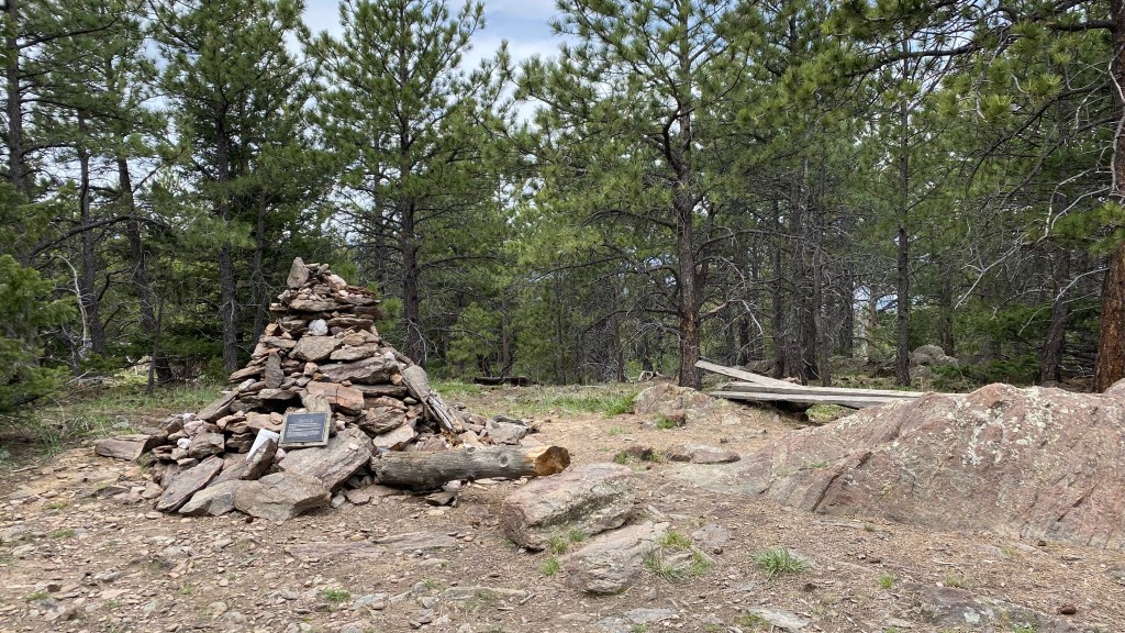 The trail steepens and switchbacks as you begin the final push to the summit of Sheep Mountain. I will say, this is a different kind of Colorado mountain summit, as you are far below treeline and the summit is wooded. There is a large cairn that marks the unremarkable summit in the thick trees at 8,450 feet. (Because it is hard to know what you have been hiking up this whole time, I like that Peakbagger.com has this photo.)