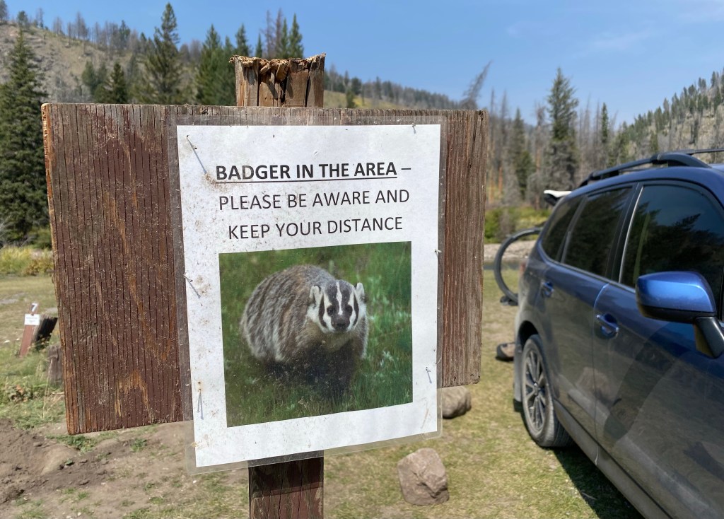Yes, I’m serious about the badger. My campsite had a badger living in it! I’m terrified of badgers, and this definitely spiced up my visit. I reserved site #6, which was an open site on the banks of Slough Creek. I spent most of my visit down by the creek in my chair reading, watching ducks, and soaking my feet in the water (while scrolling on my phone due to the amazing cell service). I had just a short walk to the vault toilets and the potable water spigot. This was not my first pick when I was reserving a site, but considering the whole campground for the entire season sold out within about fifteen minutes when reservations opened, I took what I could get and had a lovely experience!