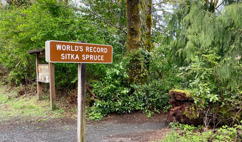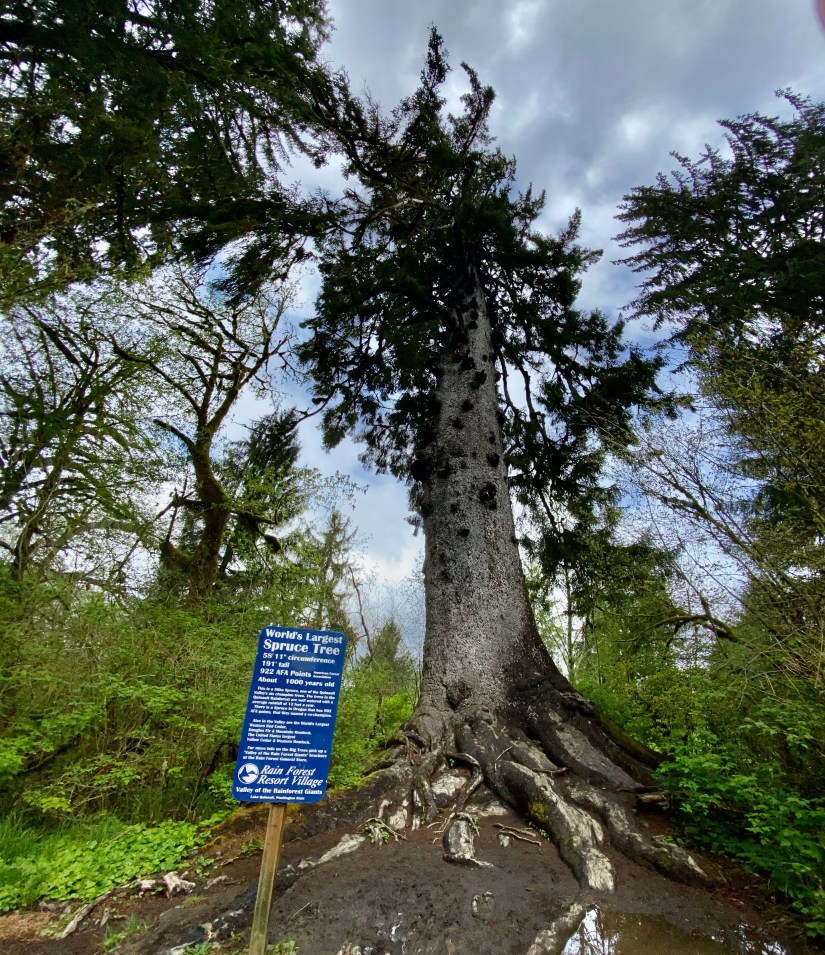 Quinault’s record sitka spruce is thought to be 1000 years old, and stands 191 feet tall and is 17.7 feet in diameter. Standing next to it, I can confirm this is one HUGE tree. Fun and short detour!