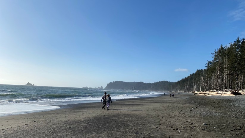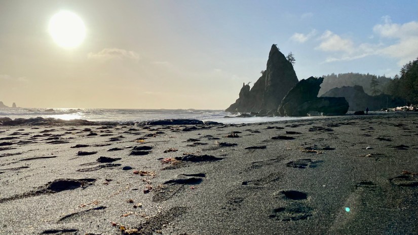 Next up were some adventures to check things off in our national park travel journals, nab passport stamps, and it wouldn’t be an adventure without Eric miscalculating how much gas his truck had left before head into a remote aspect of the park (thank goodness for Queets!). First up was quickly checking out Second Beach, which is accessed through a short walk through the rainforest to the beach.