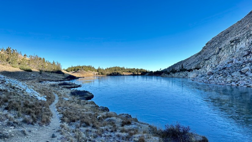 I can’t say I’ve really explored this late in the year in the Snowy Range! Wanting to kick off my 39th birthday with some sort of hike, though being a day late, I headed up early to Lewis Lake Trailhead. Today I would explore a new-to-me trail to Shelf Lakes. This trail spurs off of the trail at North Gap Lake. Back in 2020 I hiked Gap Lakes as part of a big loop around Browns Peak, so I’d be repeating a bit of the terrain – however, with this being my favorite place on earth, I really can’t complain about some repeat scenery!