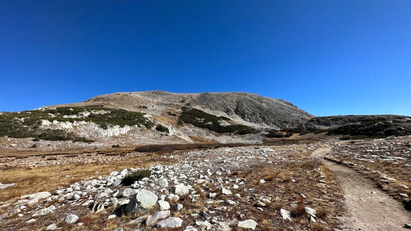 Shelf Lakes are a series of alpine lakes that sit on the northern edge of Browns Peak, a broad peak smooshed down by the weight of glaciers that tops out at 11,722 feet in elevation. I’ve been saying for a few years I wanted to climb it, but alas, that would have to wait for another day. (I must admit, the weather was GORGEOUS and there was little wind, making me look at Medicine Bow Peak and wondering if I should’ve opted for a summit climb on this day.)