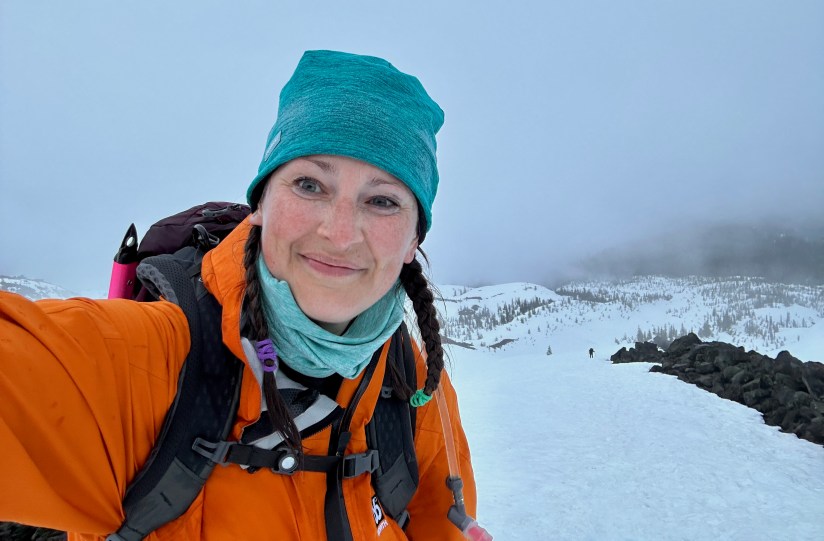 The final 2,000 feet, which would take a few hours to trudge up, were when things turned mental. Of course my body was hurting from the endless stairsteeper, and my feet had started screaming in their stiff mountaineering boots (I thankfully walked away with zero blisters, though I could’ve swore my feet were hamburger by the summit). My ankles ached, presumably from the heavy boots and crampons. I took to giving myself pep talks out loud, cussing myself out and telling myself it was mind over matter and that I could do hard things. Then I’d switch to “OMG, I am doing this and it is so awesome and look at the pretty scenery!” and then next thing I knew I’d be getting choked up and I’d have to remind myself to save the tears for the summit. I thought back to Ken Chlouber of Leadville 100 fame (a mountain bike race I gave up on 76 miles in), and his eternal “You are tougher than you think you are, and you can do more than you think you can” advice. Kick, step, rest, repeat, kick, step, rest, repeat. Count 1, 2, 3, 4, 5, 6, 7… all the way to 100. Start over. 1, 2, 3, 4, 5, 5, 6… At some point I resolved I do not have enough personal demons to work out to be a mountaineer. I’d turn around at times to take in the marine layer behind me, and get a sense of vertigo from the steep slope and winter landscape. “Woah there, don’t fall down the mountain!” I’d warn myself as my brain struggled to right my body in the endless white landscape.
