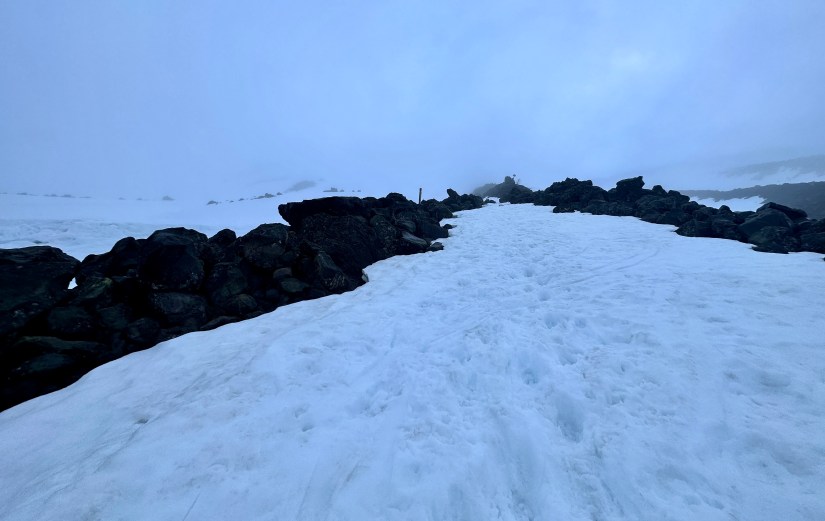 Looking back up at the summit, which had cleared off. I won’t lie, I debated heading back up! The clear skies, however, did not last long