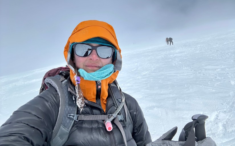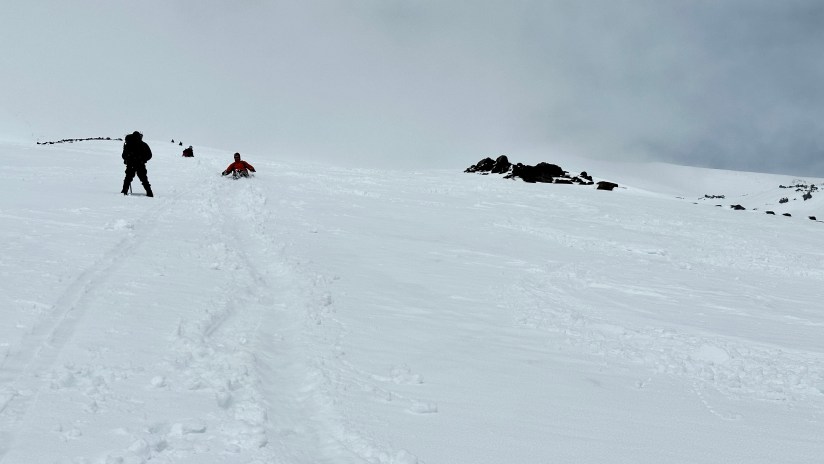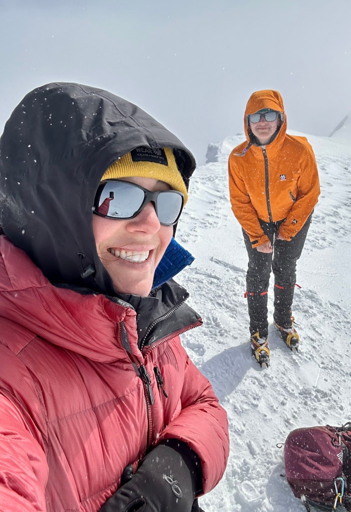 At the top of False Summit #4 I took my first pee break of the day, oogled a raven that was circling, and removed my crampons so the butt sliding fun could begin. Pure and utter shenanigans, and it had been such a long time since I had laughed that hard. (Mixed with one episode of pure terror where I thought I was heading for a crevasse and screamed at the top of my lungs “Is that a f—ing crevasse?! I wasn’t swallowed by the mountain, in case I needed to clarify.). Though we were not incredibly speedy, it was so much fun.