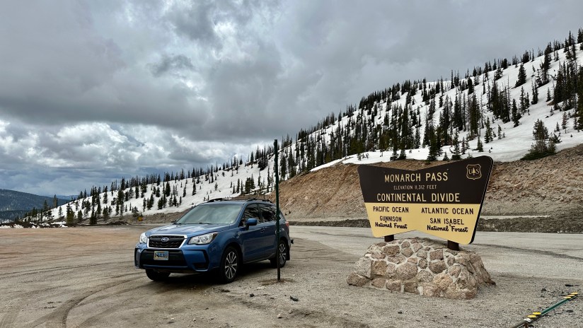 Soon I’d join US Highway 285 on a familiar trek down into the Arkansas River Valley, with the cloud-covered Sawatch 14ers in front of me, and over Monarch Pass to Gunnison. I spent five years in a row racing the Gunnison Growler mountain bike race, so this is a familiar and favorite drive of mine. I made a super disappointing stop at the gift shop at the top of Monarch Pass. What was an amazing, kitschy place a year before now has lost its character and seems so commercial. I legit was so disappointed in the remodel and change in business model I didn’t even use the restrooms, and headed back out the door!