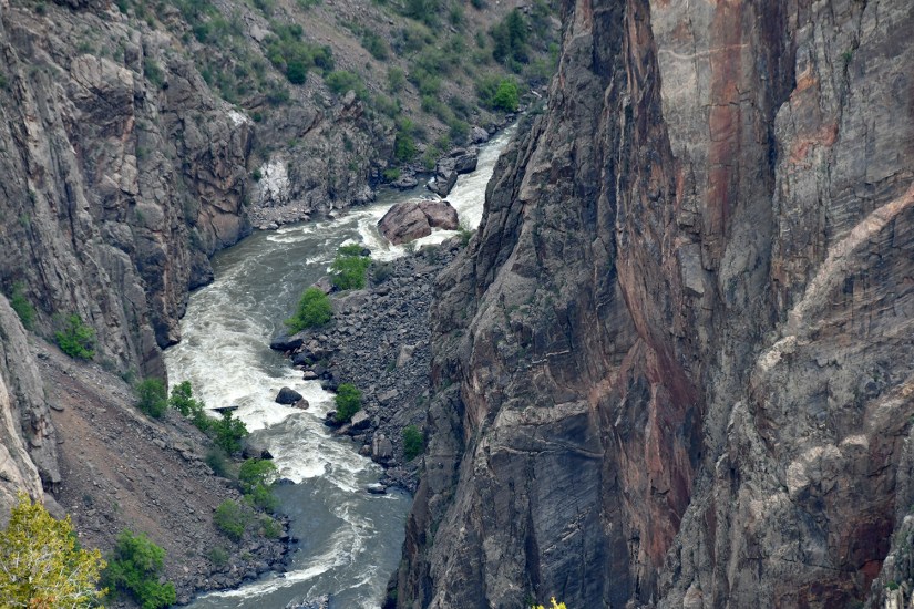 Chasm View is the narrowest part of the Black Canyon, with the north rim just 1,100 feet away. The river also has its greatest descent at this point, dropping 240 feet per mile. There is a viewpoint and trail for this part on the north rim as well.