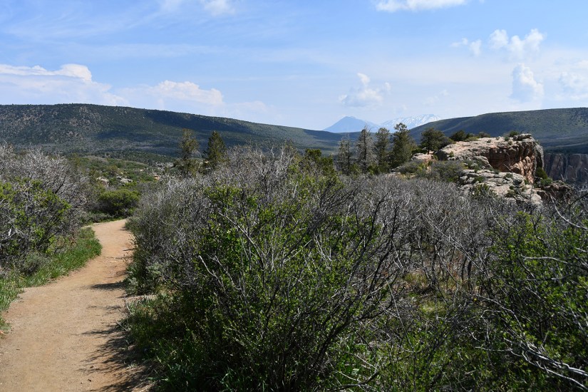 Leaving from the campsite, the Rim Rock Trail leads you past Tomichi Point and to the visitor center, about one mile in distance. From there I would revisit the Gunnison Point Overlook before continuing on Oak Flat Loop, which is the only trail that goes below the rim of the canyon that does not require a inner-canyon backcountry permit (however, it does not lead down to the river like the other canyon access trails do). Then I’d head back to the campground on the Uplands Trail. Overall, this hike would come in at four miles and would take me a smidge over two hours to complete at my casual, picture takin’ pace. (Information on hiking trails at Black Canyon of the Gunnision National Park can be found here.)