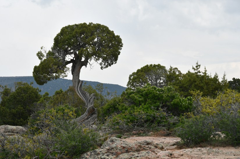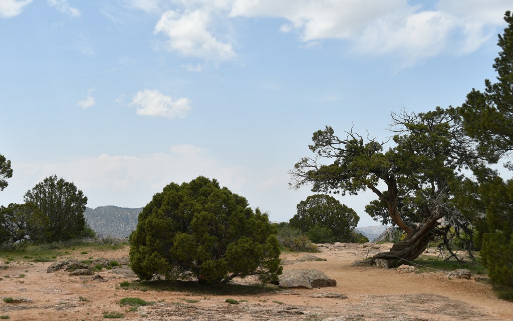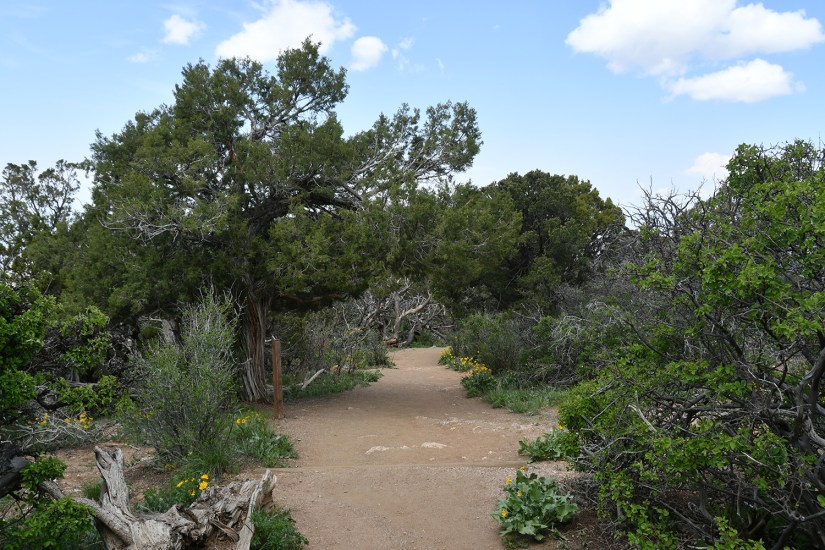 At High Point the South Rim Road terminates in a one-way parking loop. This is a popular area for a picnic lunch, and also is the starting point of two hikes – Warner Point Nature Trail and the Warner Route down to the Gunnison River. Because it was the noon hour, parking was nonexistent and I made about eight circles around the loop waiting for a car to leave (I finally just came to a complete stop and waited as while I was circling cars that arrived after me would nab spots). A group remarked after I parked that I was making them dizzy with my circling! So travel tip… time your High Point stop to sometime not during the lunch hour for better parking ease!