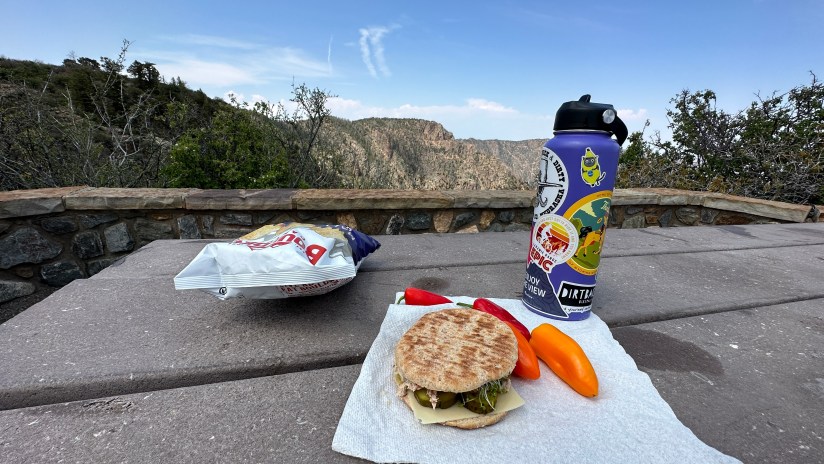 After arriving back at my campsite I took a quick camp bath with a Venture Wipe, sprayed on some dry shampoo, and relaxed in my chair a bit. The rest of the day I had planned to tackle the South Rim Road, which leads to many overlooks. One thing I did not realize is how most of the overlooks require quite a walk, so I still had a lot of activity coming up in the day! I headed out shortly after 10am.