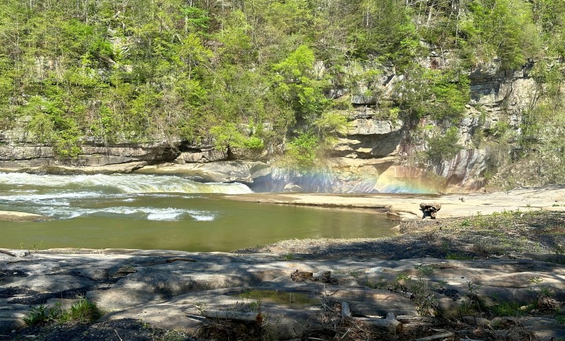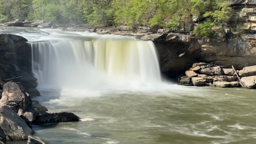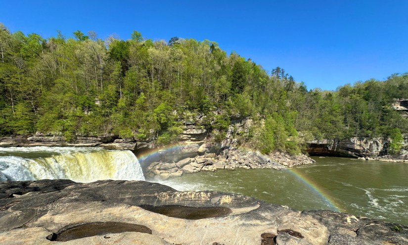 Cumberland Falls immediately got a big thumbs up from me before I even saw the whole waterfall as a rainbow came into view! The 3,600 cubic feet of water that spills over the sandstone edge every second creates not only perfect rainbow views, but also is one of two places in the WORLD that forms a “moonbow” during a full moon.