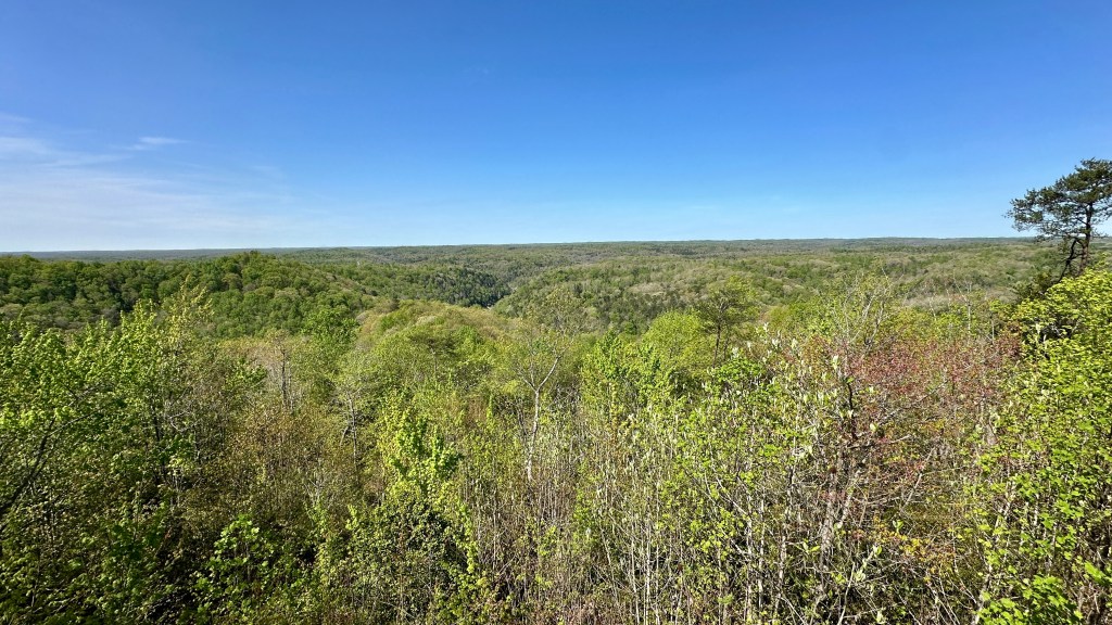 Daniel Boone National Forest was just a short drive south of my campground on Lake Cumberland. Established in 1937, this national forest spans 708,000 acres in eastern Kentucky, and boasts over 600 miles of trails. Unfortunately, I only had a few hours to explore so my trail mileage would just be a handful, and I would also be hiking in Big South Fork National River and Recreation Area (National Park Service unit #79 for me!) and Cumberland Falls State Resort Park.