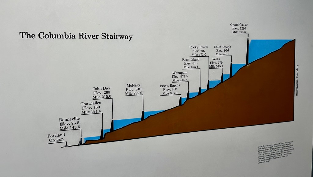 My never-ending quest for passport stamps led us to Bonneville Lock & Dam since we were coming through before the visitor center on the Washington side would be closing. We thought this would just be a quick stop for some stamps at the visitor center, but surprise! There was a self-guided tour and we were able to see the hydroelectric power plant! Another level brought us to the Fish Viewing Center, where we observed the salmon ladder, and disgusting lampreys stuck on the glass (seriously tramuatized by them… so much yuck!)