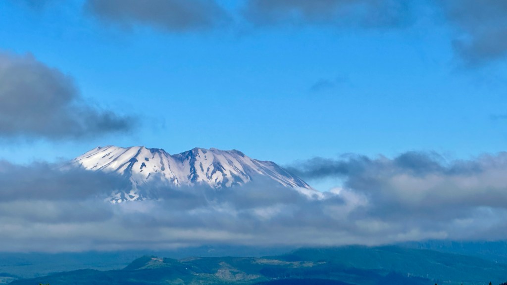 On our way to Trout Lake the next morning we made a point to stop at the McClellan Viewpoint, which offers a stunning view to Mount St. Helens (and vault toilets for those who may need them!)