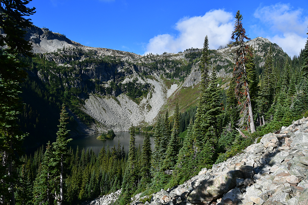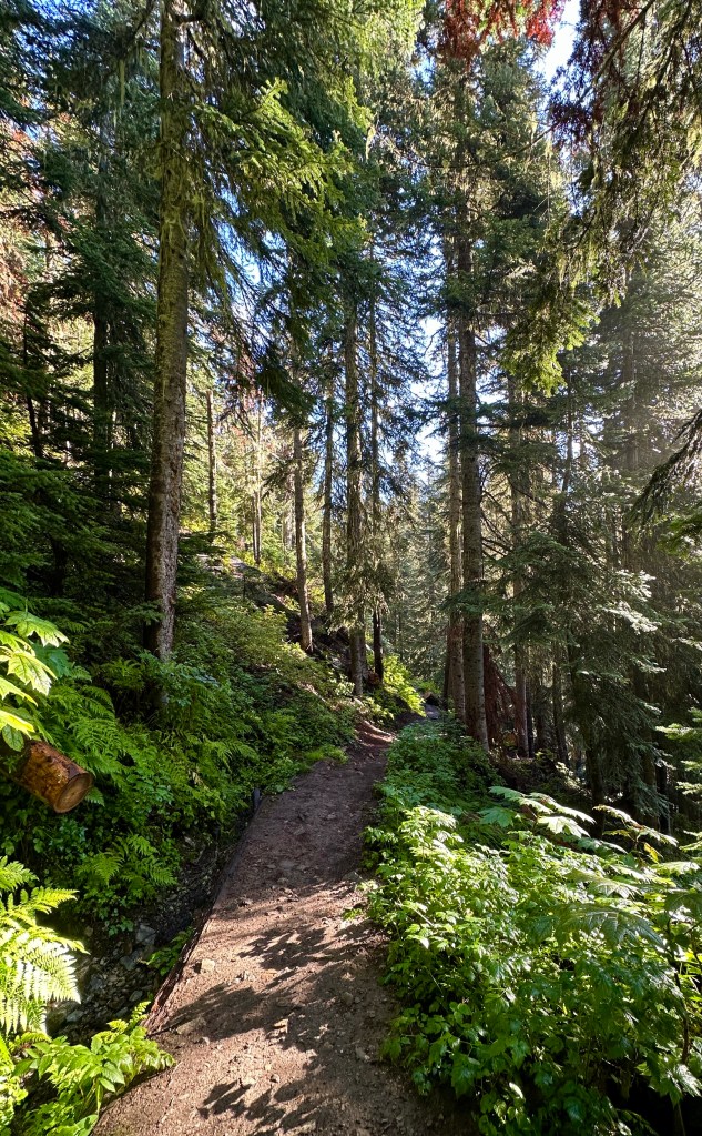 The views on the descent in the alpine zone were fantastic, with Lake Ann to our left and glacier tarns to the right. Once entering back into the trees, the hike turns very Type 2 (the type of fun that is fun only after the activity is done). This arm of the trail is very steep. I definitely regretted not bringing my trekking poles to help save my knees, but on the flip side, I was very thankful we did not ascend this side. Glimpses of Rainy Lake lessened the pain slightly, but it was mostly a slog back to the car; Janice and I were lost in our silent thoughts as we tried to ignore our knees’ cries for help.