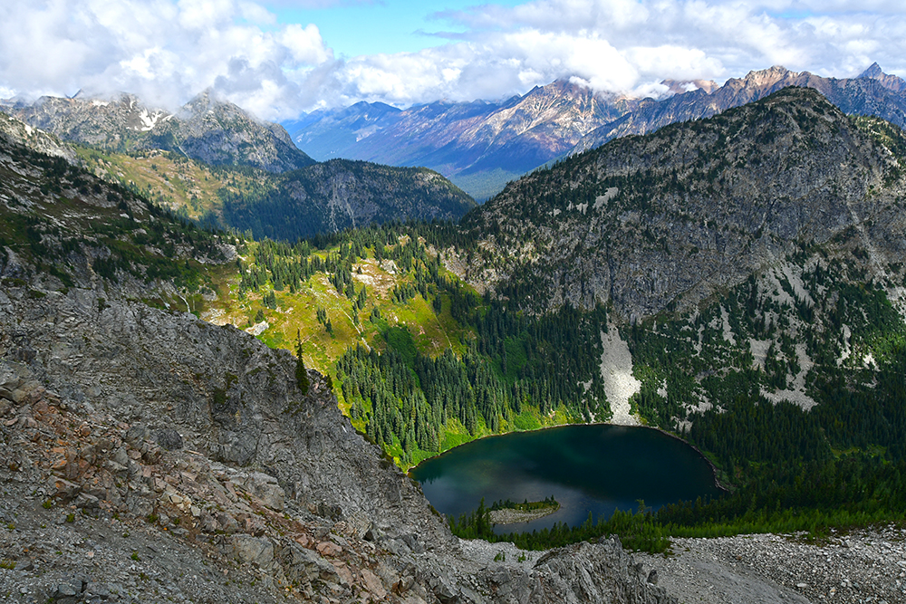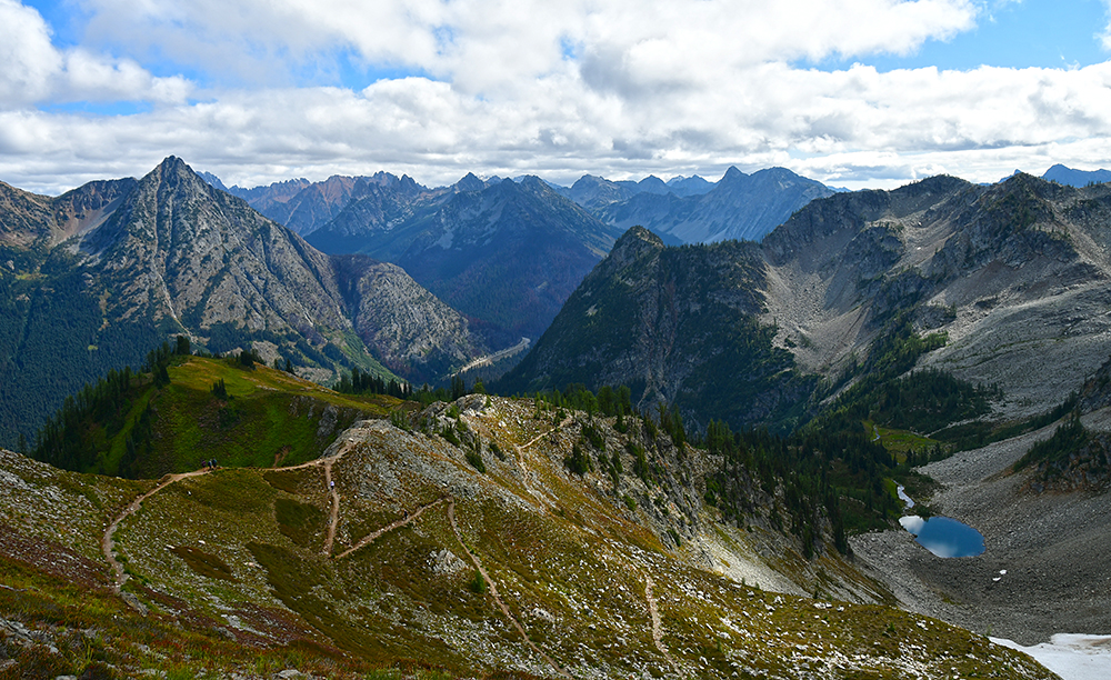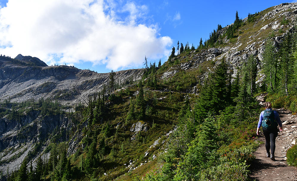 There is one stout push up to the high point of Maple Pass before the trail starts descending on the opposite side of Lake Ann from the ascent. Janice and I took the opportunity to take more photos, and I tried to soak up all the views before we descended.