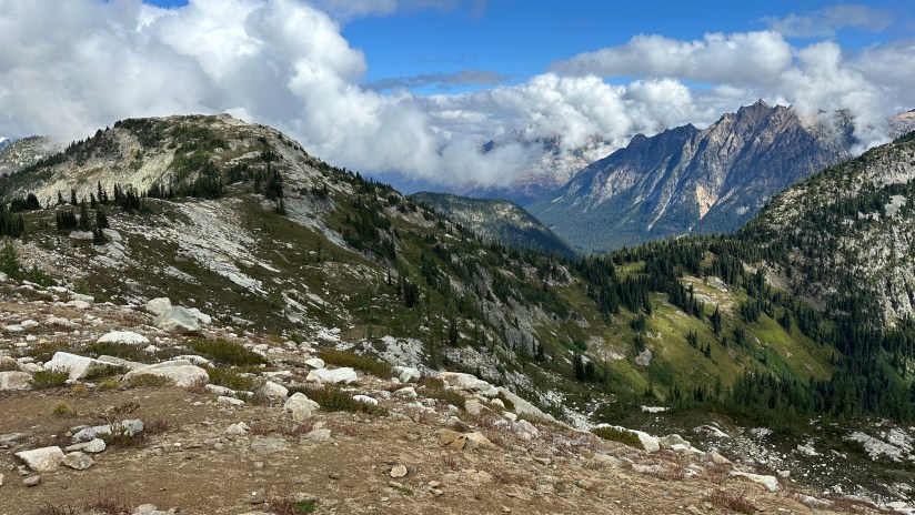 The scenery as we climbed higher up to Maple Pass took my breath away. The North Cascades stretched before us, and Glacier Peak was also in the distance. I truly did not know where to look, as the views came in from every direction. I feel like it is a rarity to do a hike where every direction is beautiful, but here I was!