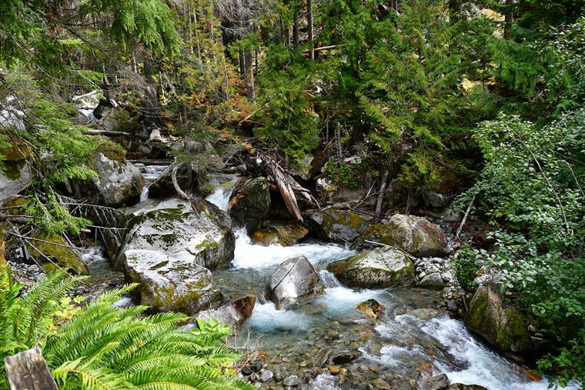 Janice and I had skipped a few stops the previous day, so before heading to Baker Lake we would backtrack to Diablo Lake, chasing some waterfalls along the way. First up would be Ladder Creek Falls outside of Newhalem. Located behind the Gorge Powerhouse, reaching this pretty waterfall is just a short 0.5 mile hike, though it can get quite steep (lots of stairs). After dark there is a lightshow that runs daily until midnight.
