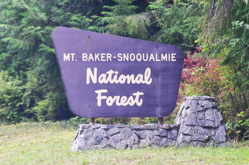 Bellies full, we made quick stop at the wilderness office so I could get passport stamps, and then set out for the norther end of Baker Lake where we would spend two nights (our only multi-night camping site of the trip!). After a fun, curvy drive up Burpee Hill Road outside of Concrete, we headed north. Though the clouds were thick and low, Mount Baker (one of Washington’s five volcanoes) teased us with views, leading to my usual excited screaming that happens when I see a volcano.