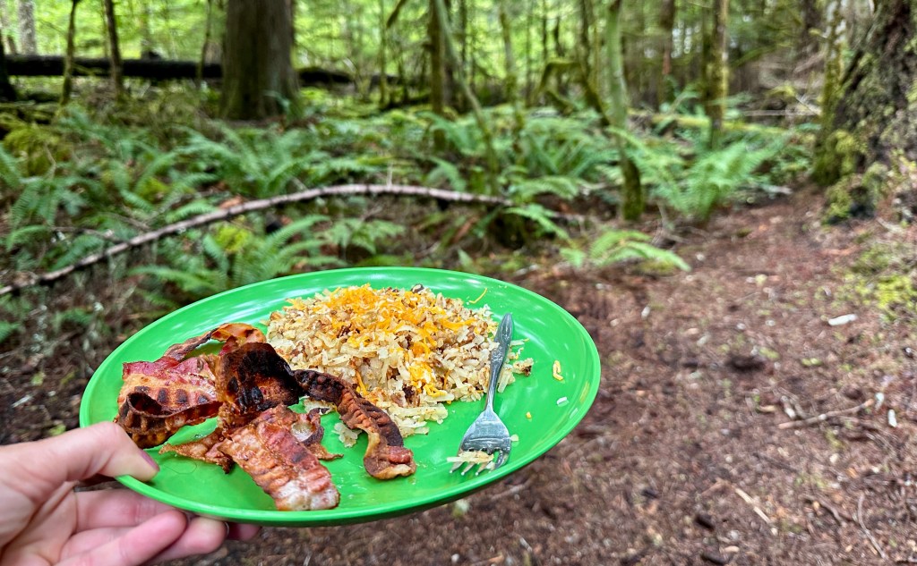 With a generous 12pm check out time at our campground, Janice and I had a slow morning with no early alarm, plenty of instant coffee, and a hashbrown and bacon breakfast. We had settled into a routine where I was the cook (shocking!) and Janice was the dishwasher, though on this day Janice decided my whole kitchen tote needed cleaned and organized as well. We learned bacon is quite the messy camping food with the grease, and learned to not let the grease cool in the pan.