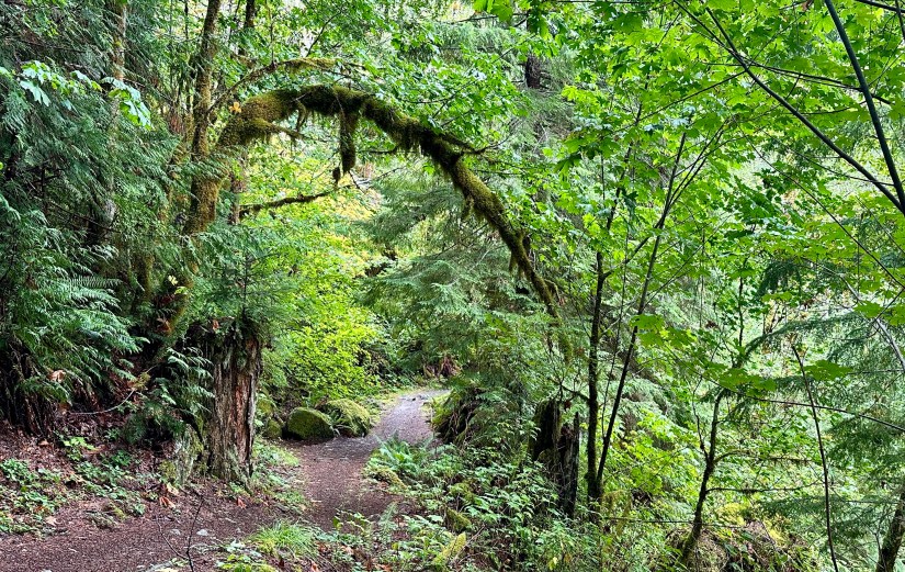 Soon after we turned around and started heading back, the rain began falling hard. While we had light off and on rain the entire hike, this was drenching rain that came nonstop. Rain jackets were donned (we didn’t fuss with our rain pants, just choosing to be half way) and we scurried through the forest without much stopping or talking. As the saying goes, there’s no bad weather, just bad clothing choices! Rain jackets meant the hike was still enjoyable. In fact, it is just magical hiking in the Cascades in the rain!