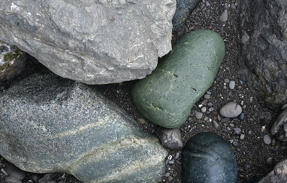 Well, first… there’s really no “trail.” Our route would just follow the shore line. Going was slow and tricky in many parts due to the soft sand, gooey seaweed, and slippery rocks. Then we started finding rocks and sea glass that we liked, and suddenly every few steps one of us was bending down to take a closer look at something cool.