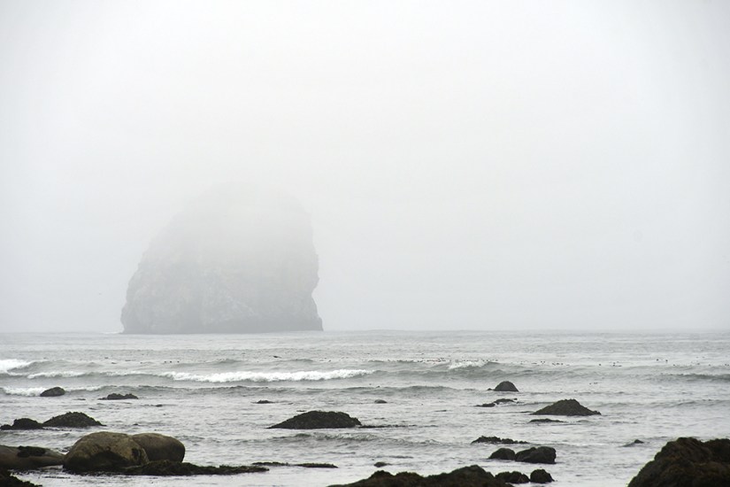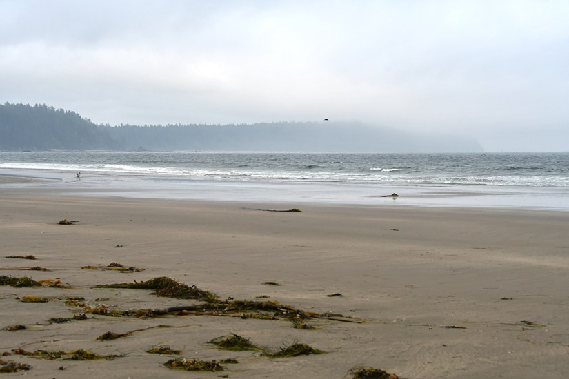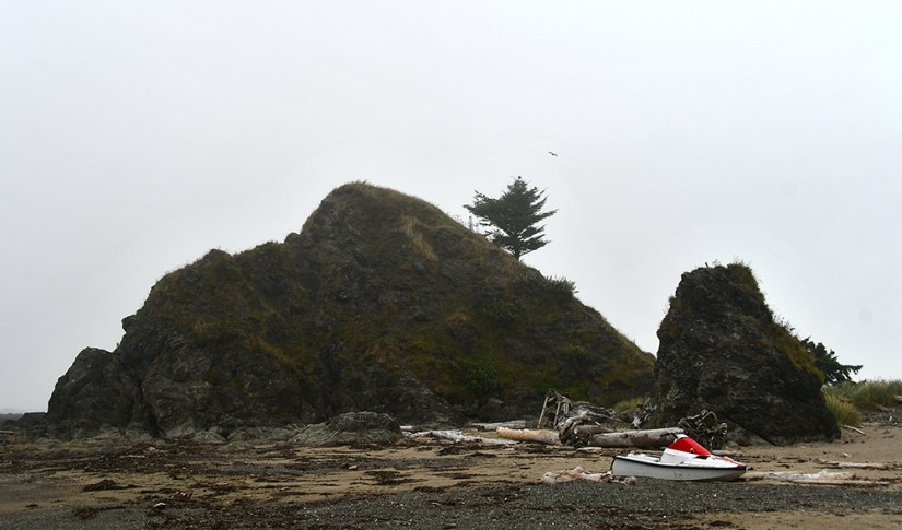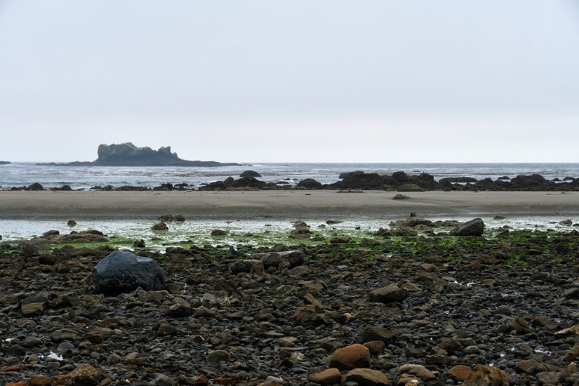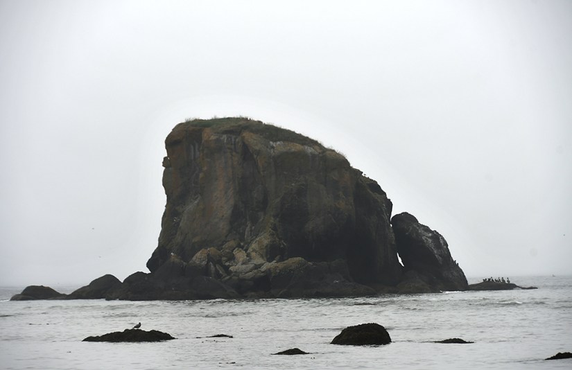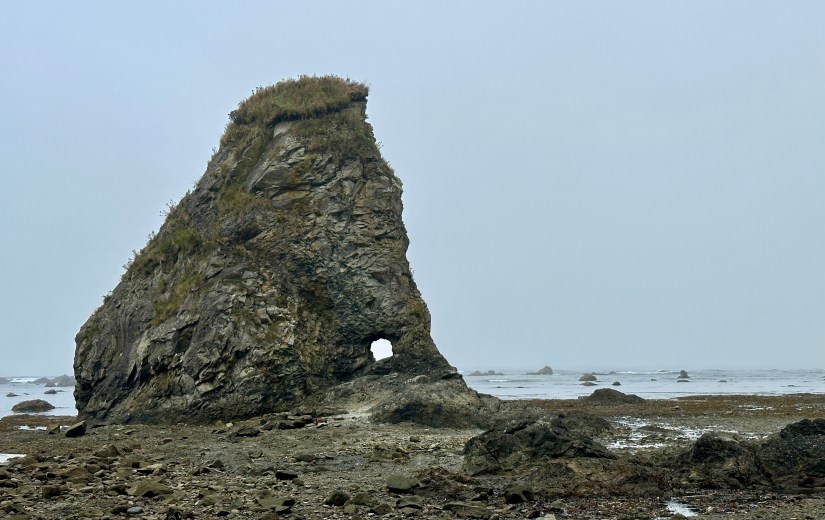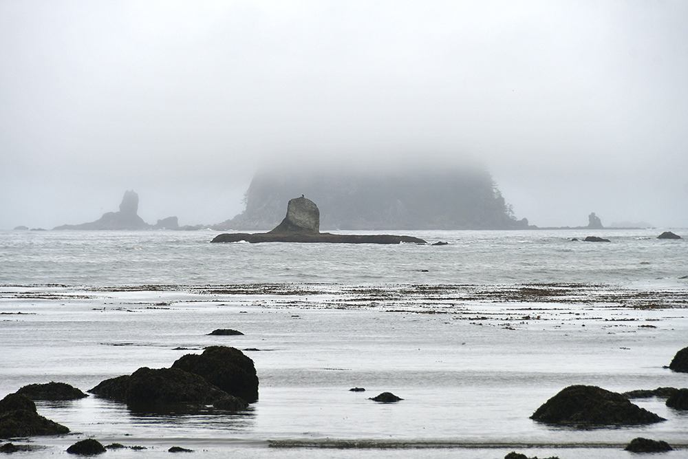 What a drastic change from the previous day’s sunny, warm weather! Thick fog enveloped Cape Alava as I peered out from the tent after a restful night next to the ocean. Everything felt damp, and there was a chill in the air that happens when things get that humid. Time for some moody coastal weather!