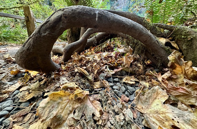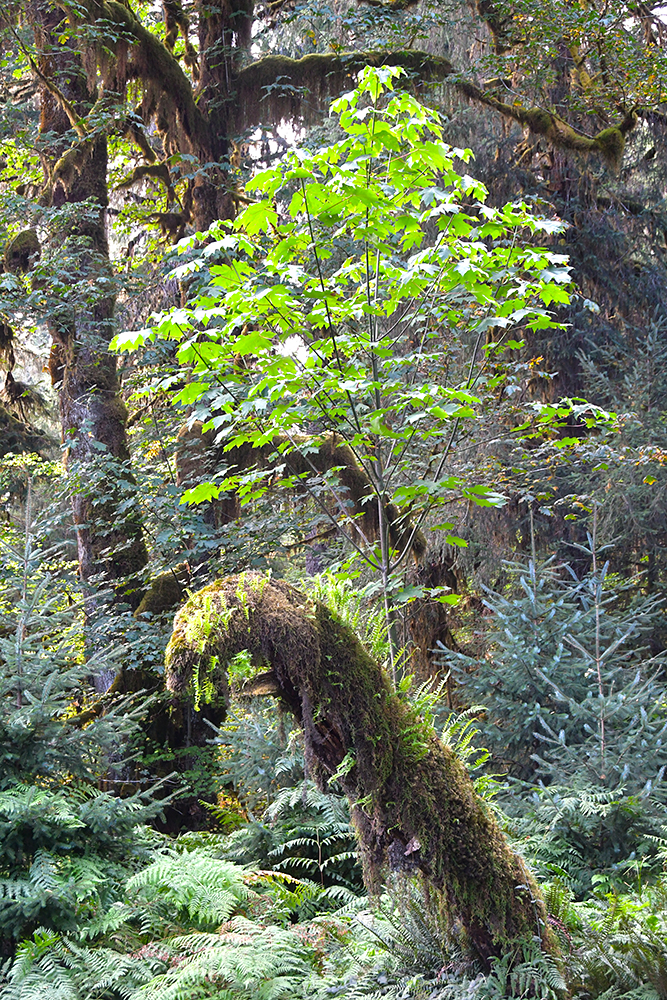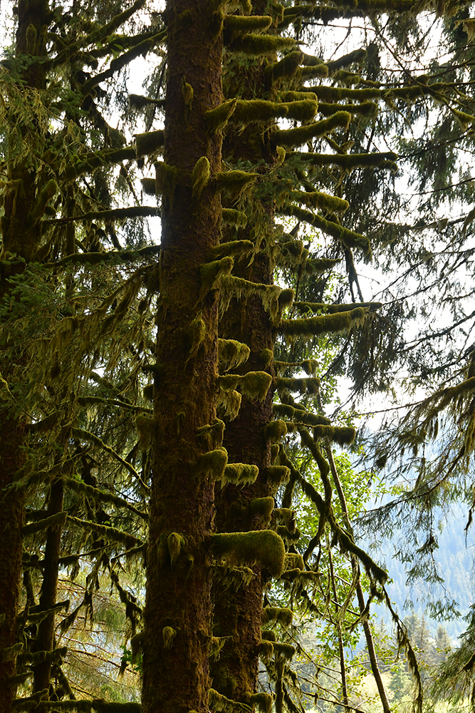 After wrapping up the 0.8 mile of Hall of Mosses we turned onto the 1.2 mile Spruce Nature Trail, which leads to the Hoh River. Spruce Nature Trail only had a few other people hiking it, so provided great respite from the crowds earlier in the hike. (Hall of Mosses and Spruce Nature Trail can be hiked on their own.) There is one other main trail leaving from the Hoh Rainforest Trailhead, the Hoh River Trail. This trail ends at the base of Blue Glacier and the route up to the summit of Mount Olympus after 18.5 miles. Backcountry campsites are found along Hoh River Trail as well.