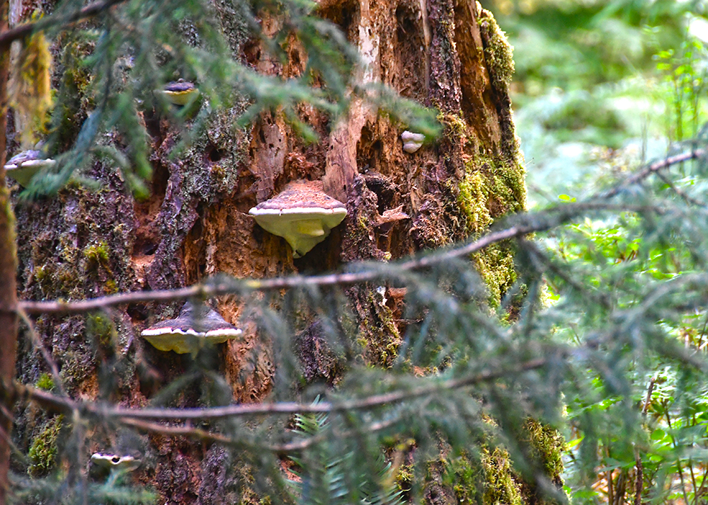Janice and I chose to do a clockwise hike of Hall of Mosses first. I had hiked Hall of Mosses during a previous visit in the spring rain, so it was different seeing it in the dry, late summer conditions. The crowds were annoying, but Janice and I still enjoyed ourselves and took a large amount of photos of the moss, fungi, and nurse trees. (As the proclaimed Moss Lady of the trip, it is only right I took a million photos, so strap in for all the moss photos!)