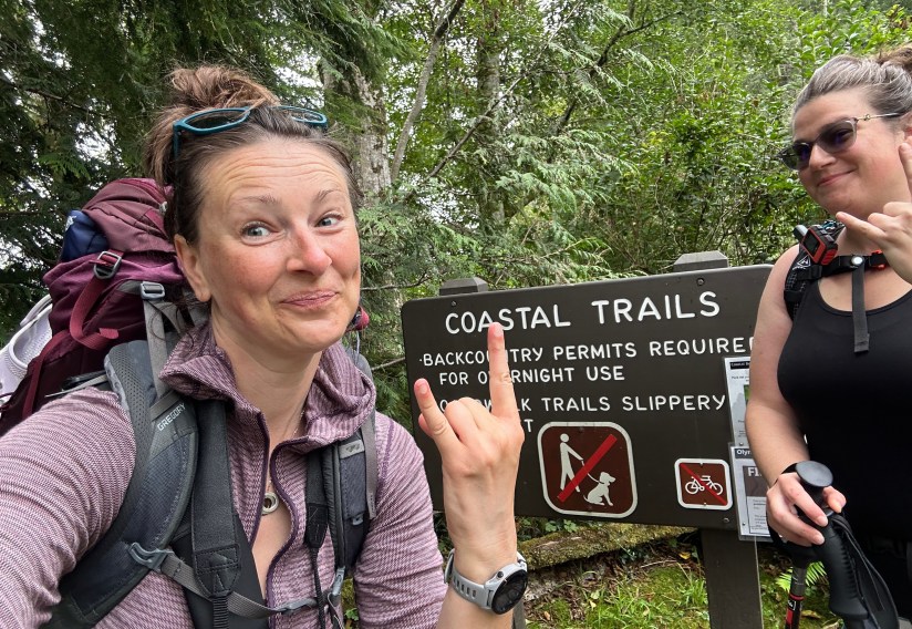 Another damp morning greeted us on the coast as we awoke at Sand Point. After two nights of backpacking the Ozette Triangle, we were looking forward to showers, non-freeze dried food in Forks, and heading into the Hoh Rainforest for a night (and marveling once again at the diversity of Olympic National Park!). A straightforward, 3-mile trek out awaited us once we drank our coffee, downed breakfast, and packed up camp (including Janice shooing a spider that was literally the size of me out of the tent as I screamed I was never backpacking again unless it was on a glacier in the alpine).