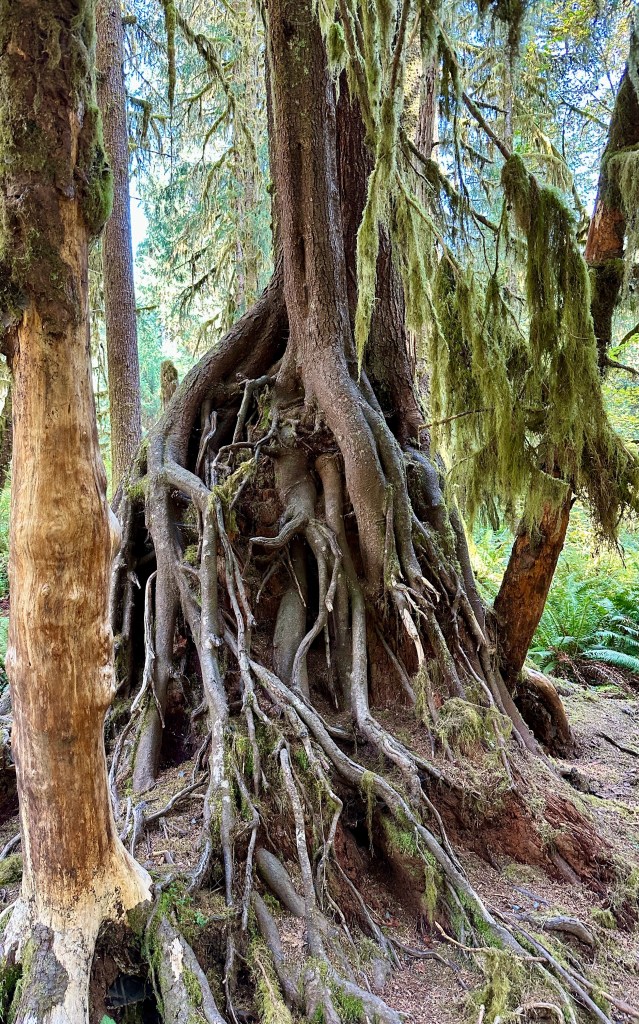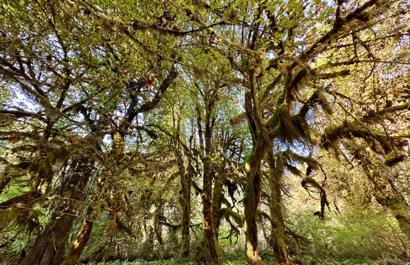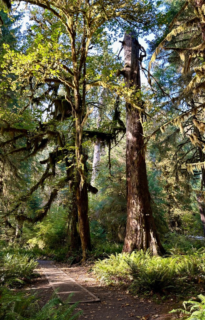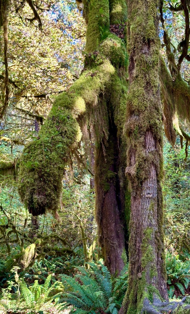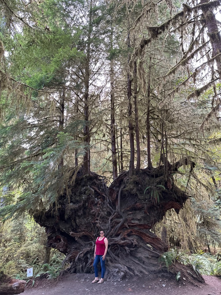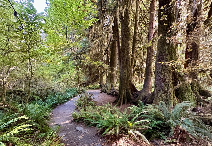Receiving 140 inches of rain a year, Hoh Rainforest is one of four found on the Olympic Peninsula, and is one of the most visited parts of Olympic National Park. The National Park Service had been warning summer about the very lengthy wait times to enter Hoh Rainforest (as they do “one out, one in” since parking is limited), so we braced for the worse as we queued in line (having a camping reservation didn’t matter, we got to wait in line like everyone else). After about 35 minutes, we reached the ranger and continued on our way, which was a relief as wait times of 2+ hours were seen over the summer season.