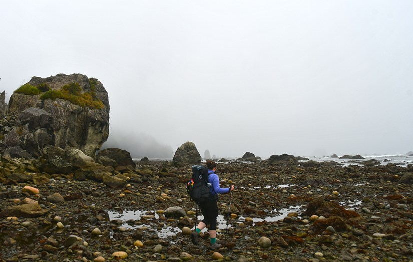 Ozette Triangle can be accomplish year-round, though typically has best conditions April-October. It is best to prepare for all weather conditions no matter the time of year. For example, on our first day we had hot weather that left us running around in sports bras and shorts as we explore the beach at Cape Alava. The next morning we awoke to thick fog and temperatures about 10-to-15 degrees Fahrenheit colder than the previous day. I’d end our second day wearing a hat and fleece! I was happy I packed some cold weather essentials. We also brought along rain jackets and pants, though they were not needed during our trip.