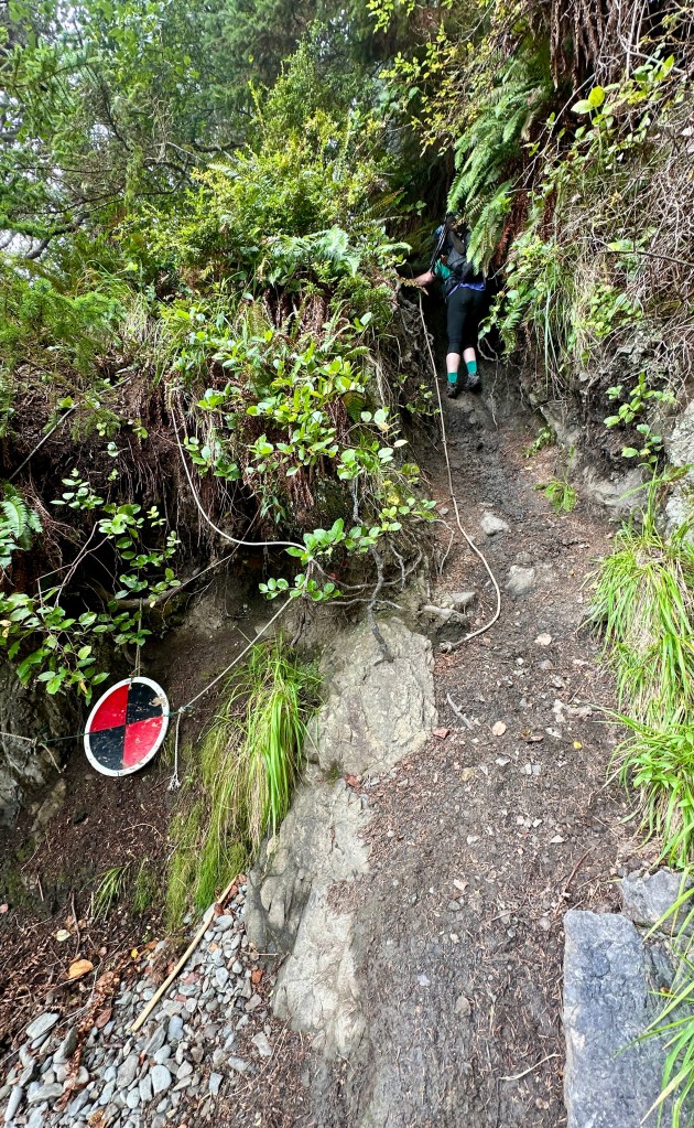 I cannot speak to the tidal restriction at Wedding Rocks, as during my trip we reached Wedding Rocks before the tide was too high and was able to round the point easily. I can, unfortunately, speak to the tidal restriction north of Sand Point and the headland trail. It was steep, muddy, eroded, and definitely an adventure! There were two ropes on the south side, with one of them ending about 15 feet off the ground – choose wisely!