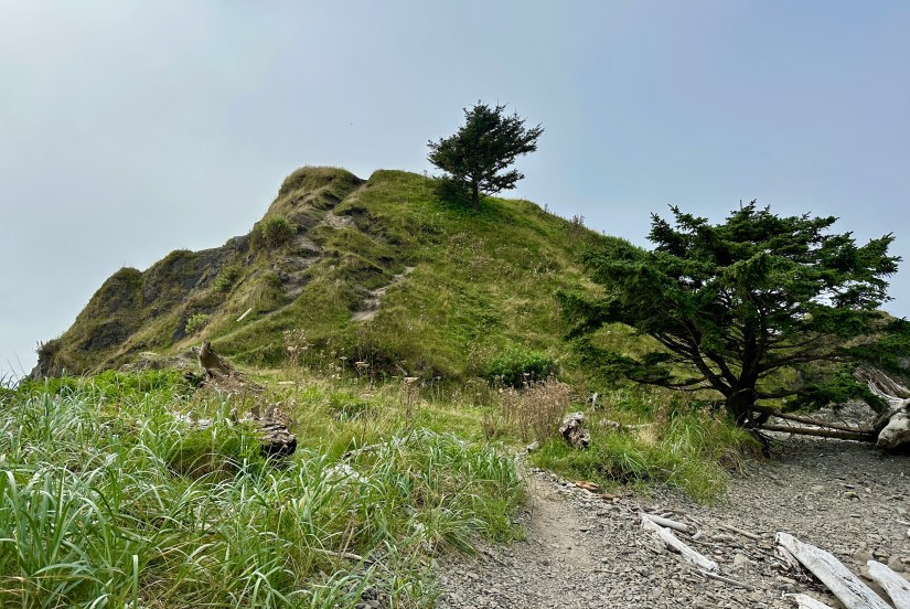 If the tide is too high and you find yourself staring at the Pacific Ocean instead of a walkable route, there is still hope! At both Wedding Rocks and the point north of Sand Point there are headland trails marked by circular red-and-black signs. These headland trails are often steep, sketchy adventures aided by a random rope or two. Not the easiest things to navigate, especially with a heavy backpack.