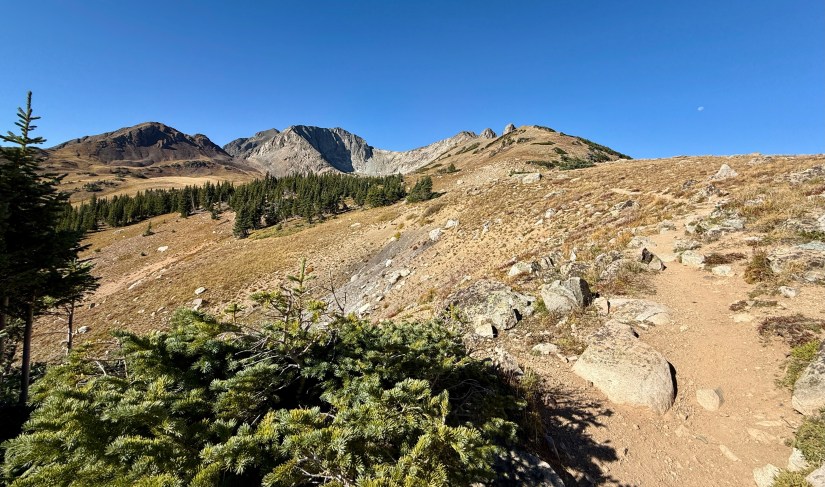At two miles in, a series of switchbacks began. Though plentiful, they were long and kept the uphill grade very mild as I worked my way out of the trees. Just under an hour in, I finally heard my first sign of other humans. Though the trail would be much busier at American Lakes and on my way back to the car, the crowds were minimal and nothing compared to many other Front Range hiking locations.