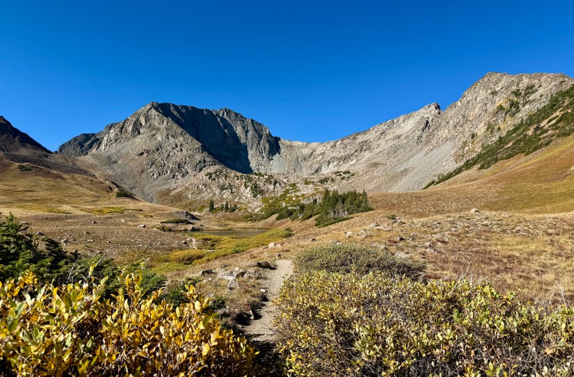 After a mile of switchbacks, I broke free to treeline at 11,100 feet. Alpine environments are my forever favorite, and I was giddy to be seeing brand new mountains and lakes. I had several mountain summits on my short list that are in this area, including Lulu Mountain and Mount Richthofen. While I would not be achieving any summits during this hike, it was great to finally lay my eyes on some summit goals in person.